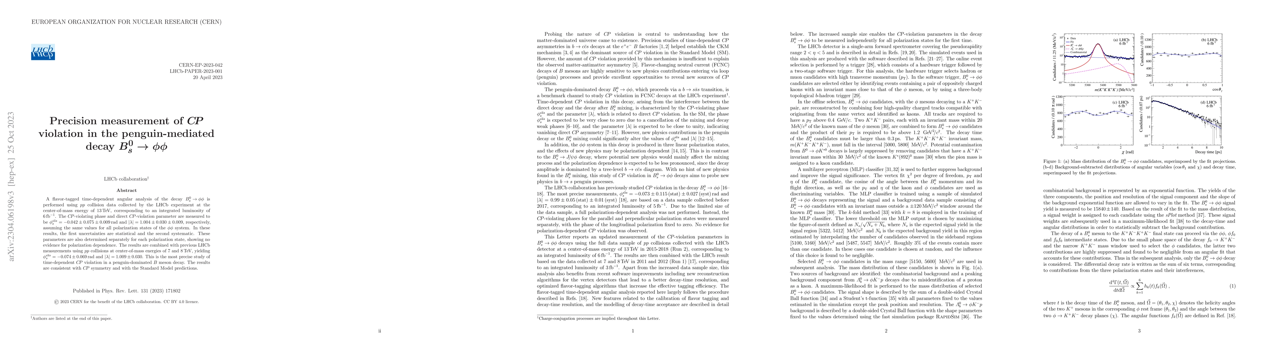 This study measures $\it{CP}$ violation in the $B_s^{0}\rightarrow\phi\phi$ decay using LHCb data, finding $\phi_{s\bar{s}s} = -0.042 \pm 0.075 \pm 0.009$ rad and $|\lambda|=1.004\pm 0.030 \pm 0.009$ with no polarization dependence. Results are consistent with $\it{CP}$ symmetry and Standard Model predictions.