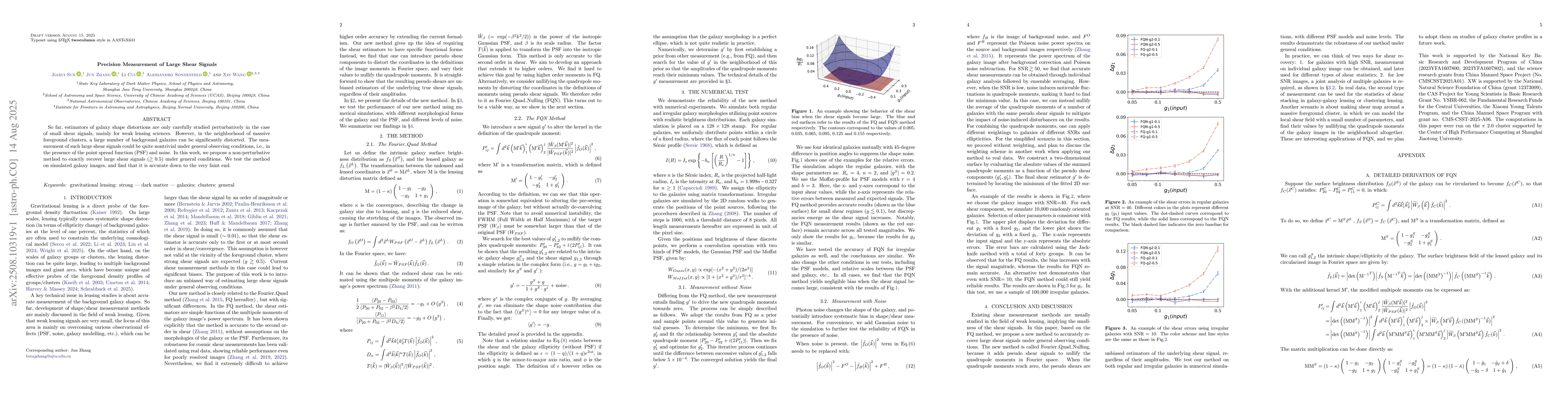 So far, estimators of galaxy shape distortions are only carefully studied perturbatively in the case of small shear signals, mainly for weak lensing sciences. However, in the neighborhood of massive foreground clusters, a large number of background galaxies can be significantly distorted. The measurement of such large shear signals could be quite nontrivial under general observing conditions, i.e., in the presence of the point spread function (PSF) and noise. In this work, we propose a non-perturbative method to exactly recover large shear signals ($\gtrsim 0.5$) under general conditions. We test the method on simulated galaxy images, and find that it is accurate down to the very faint end.
