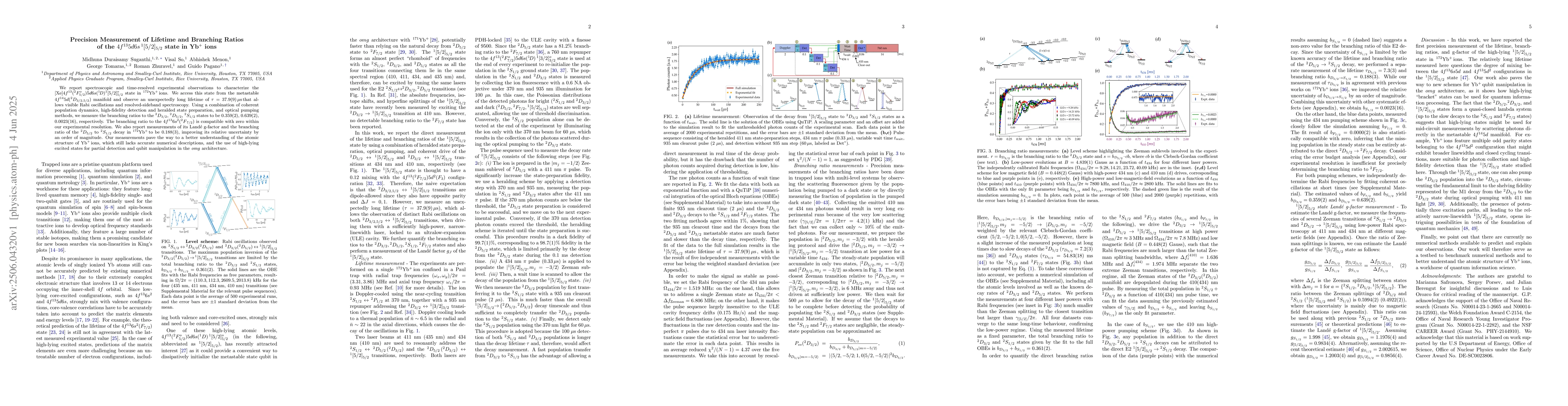 Precision measurement techniques for lifetime and branching ratios of specific atomic states, along with improved determination of Land\'e g-factors.