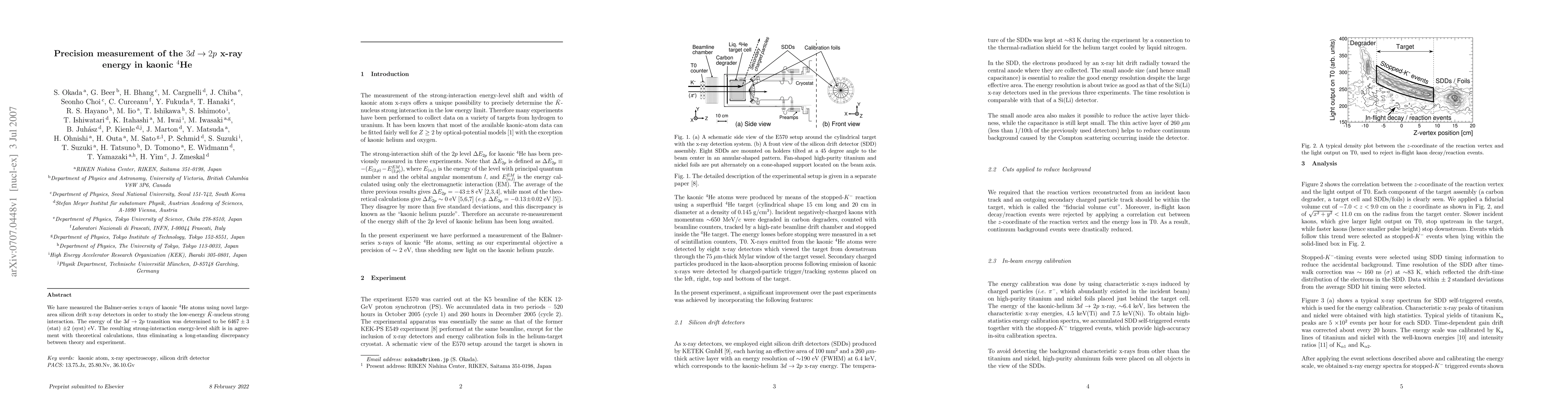Researchers measured the energy of a specific x-ray transition in kaonic $^4$He atoms to study strong nuclear interactions, finding an energy of 6467 eV that aligns with theoretical predictions.