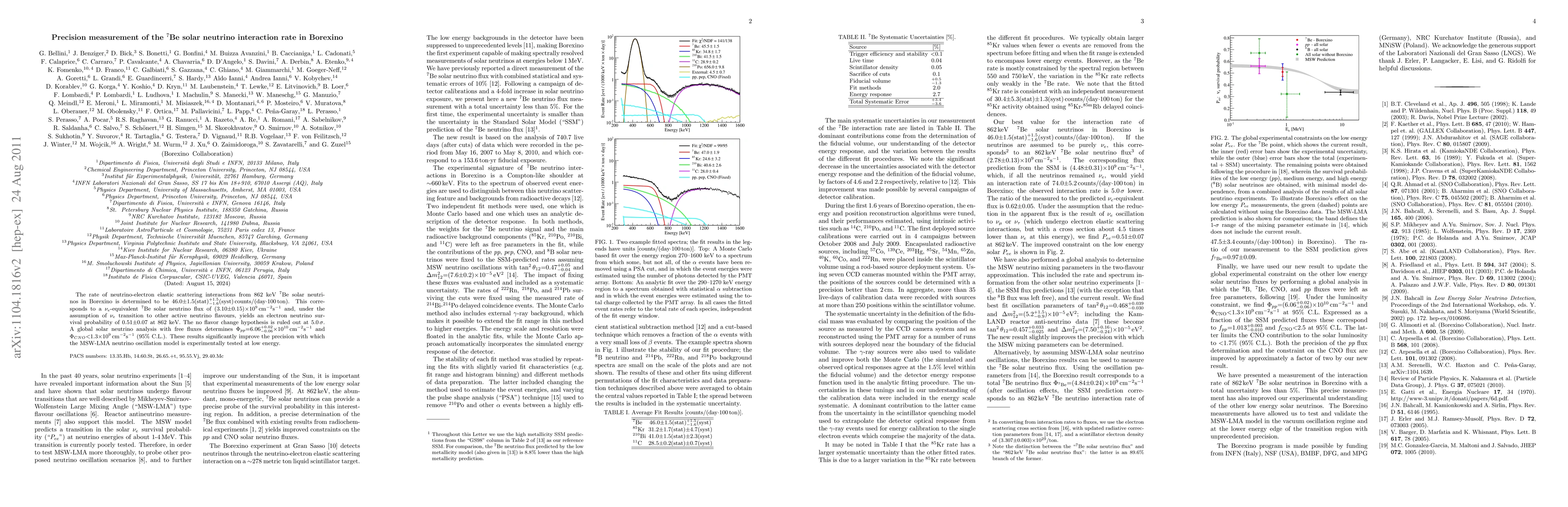 The Borexino detector measures the 7Be solar neutrino interaction rate at 46.0±1.5 counts/day/(100 tons), achieving an accuracy better than 5%. This result rejects the hypothesis of no oscillation for 7Be solar neutrinos at 4.9σ, providing a precise determination of the survival probability for solar νe's and probing the MSW-LMA transition regime.