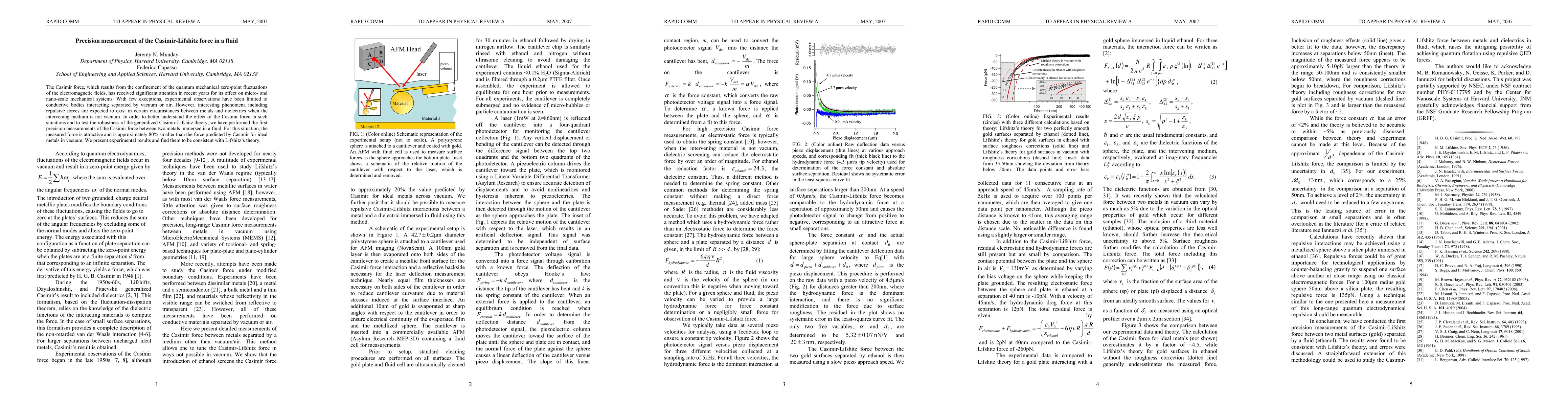 This paper reports the first precision measurements of the Casimir force between two metals immersed in a fluid, revealing an attractive force that is approximately 80% smaller than the vacuum prediction. The results support the generalized Casimir-Lifshitz theory for non-vacuum media.