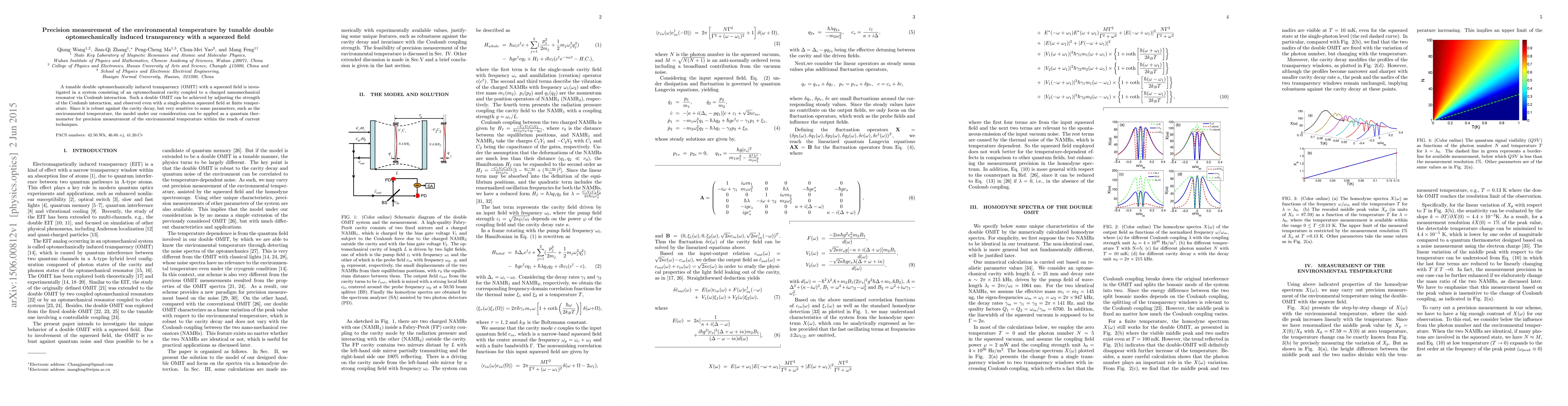 Researchers created a system that can measure environmental temperature with high precision using a tunable double optomechanically induced transparency with a squeezed field. This technology shows promise as a quantum thermometer.