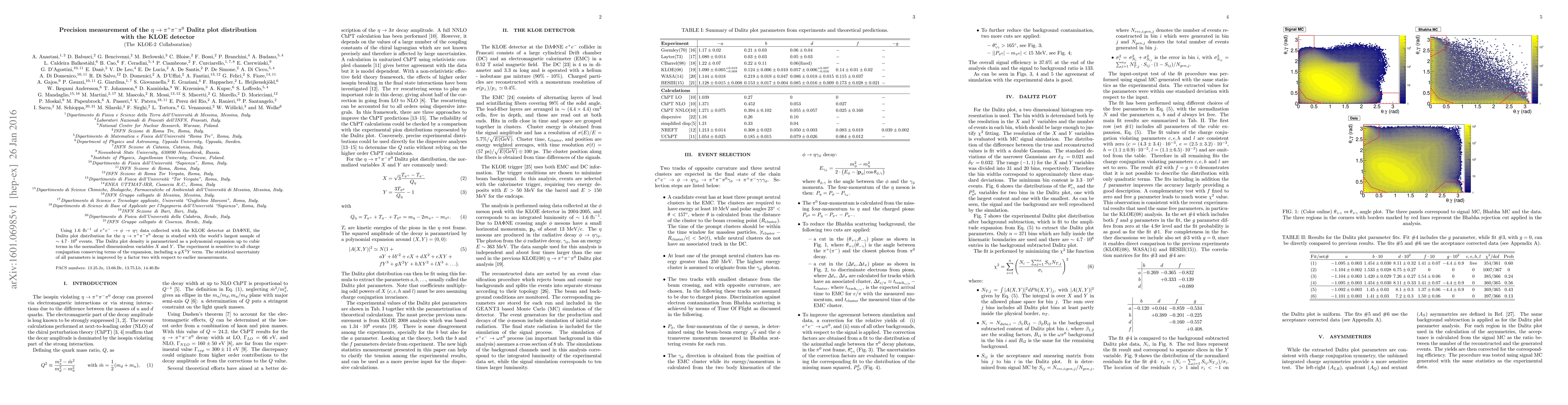 Using $1.6$ fb$^{-1}$ of $e^+ e^-\to\phi\to\eta\gamma$ data collected with the KLOE detector at DA$\Phi$NE, the Dalitz plot distribution for the $\eta \to \pi^+ \pi^- \pi^0$ decay is studied with the world's largest sample of $\sim 4.7 \cdot 10^6$ events. The Dalitz plot density is parametrized as a polynomial expansion up to cubic terms in the normalized dimensionless variables $X$ and $Y$. The experiment is sensitive to all charge conjugation conserving terms of the expansion, including a $gX^2Y$ term. The statistical uncertainty of all parameters is improved by a factor two with respect to earlier measurements.