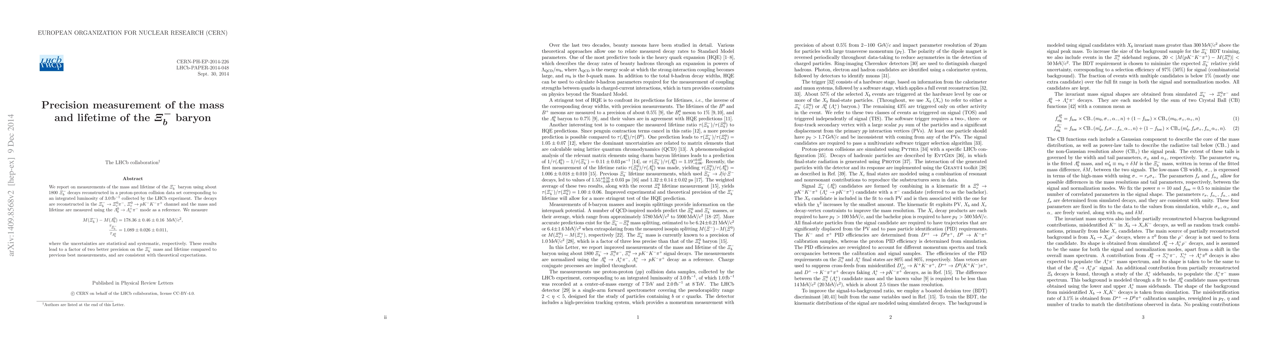 Researchers measured the mass and lifetime of the Xi_b^- baryon with high precision, achieving a factor of two better accuracy than previous measurements.