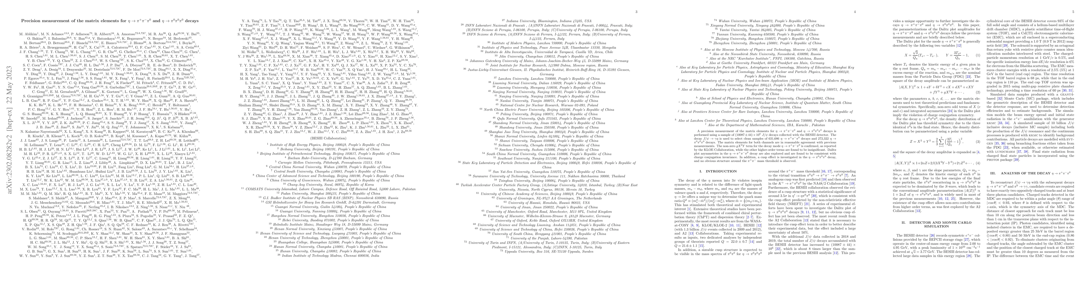 This paper reports a precise measurement of matrix elements for the $\eta\to\pi^+\pi^-\pi^0$ and $\eta\to\pi^0\pi^0\pi^0$ decay processes using data from the BESIII detector. The study confirms non-zero $gX^2Y$ terms for the former and finds no significant higher-order terms or cusp effects in the latter.