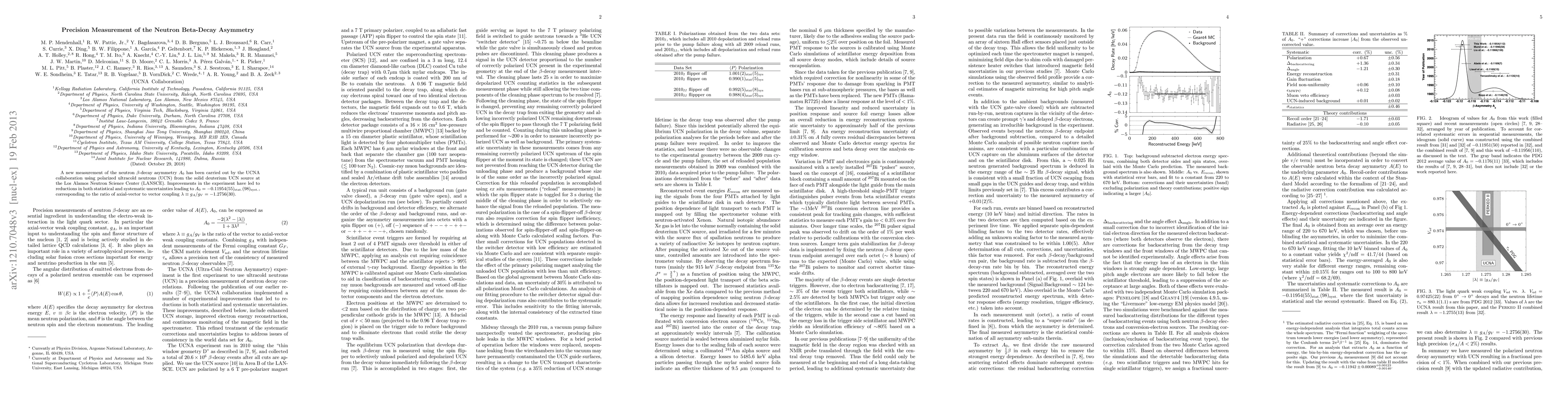 The UCNA collaboration has measured the neutron $\beta$-decay asymmetry $A_0$ with improved precision, yielding $A_0 = -0.11954(55)_{\rm stat.}(98)_{\rm syst.}$, leading to a ratio of axial-vector to vector coupling $\lambda = -1.2756(30)$. This refined measurement enhances our understanding of fundamental neutron interactions.
