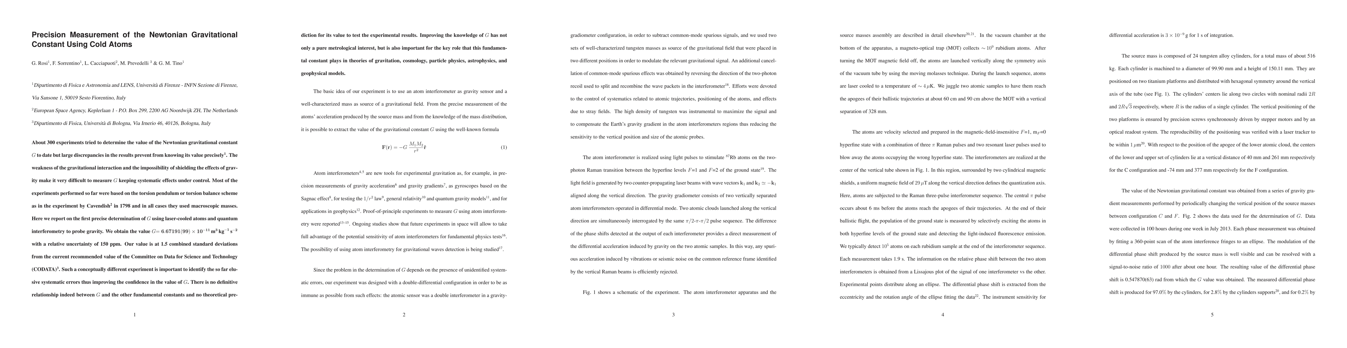 This paper reports a precise measurement of the Newtonian gravitational constant, G, using laser-cooled atoms and quantum interferometry, yielding a value of G=6.67191(99) x 10^(-11) m^3 kg^(-1) s^(-2) with a relative uncertainty of 150 parts per million. This new method helps identify systematic errors in previous experiments, improving the confidence in the value of G.