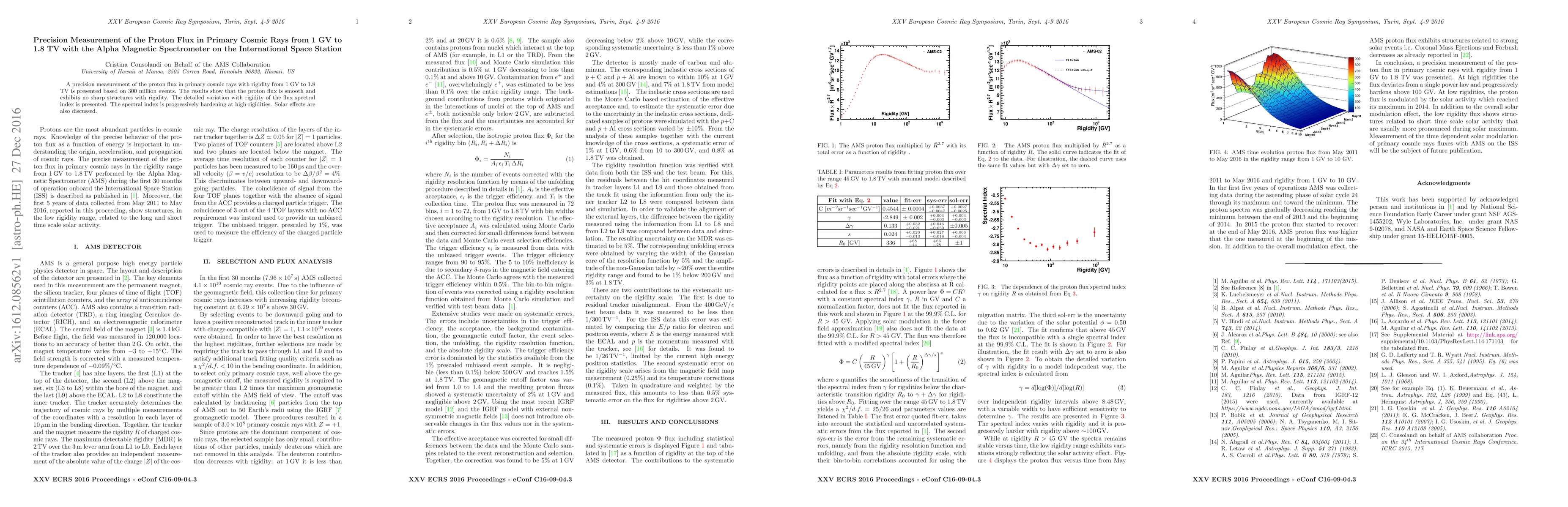 This study, conducted with the Alpha Magnetic Spectrometer on the ISS, precisely measures the proton flux in primary cosmic rays over a wide range of rigidities from 1 GV to 1.8 TV. The findings reveal a smooth proton flux without sharp structures and a progressively hardening spectral index at high rigidities, with a discussion on solar effects.
