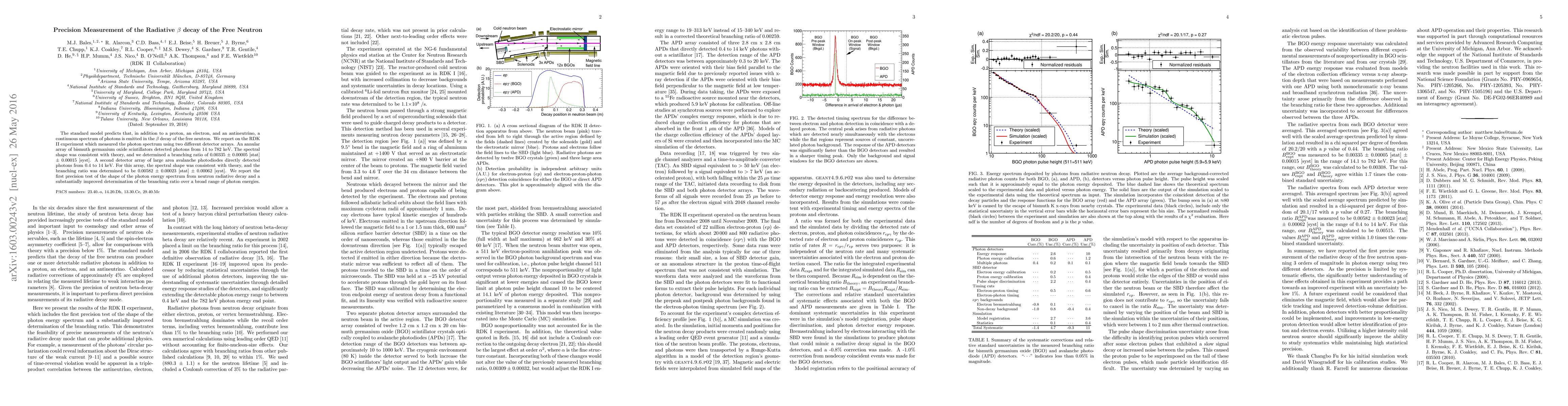 The RDK II experiment precisely measured the photon spectrum from the radiative β decay of the free neutron, confirming theoretical predictions and determining a branching ratio of 0.00335 ± 0.00020, significantly improving previous measurements.