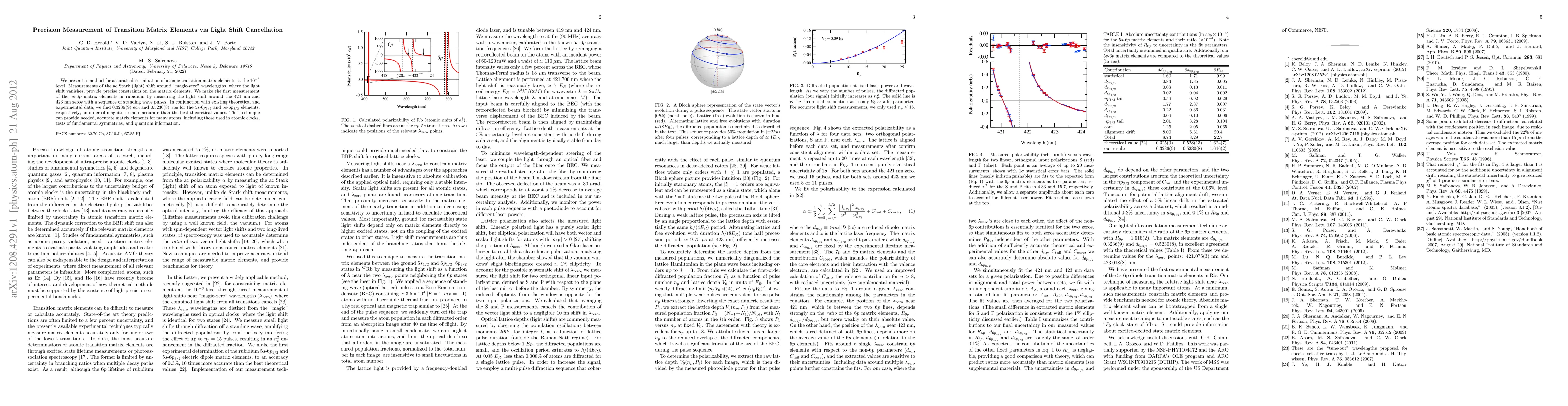 We present a method for accurate determination of atomic transition matrix elements at the 10^{-3} level. Measurements of the ac Stark (light) shift around "magic-zero" wavelengths, where the light shift vanishes, provide precise constraints on the matrix elements. We make the first measurement of the 5s-6p matrix elements in rubidium by measuring the light shift around the 421 nm and 423 nm zeros with a sequence of standing wave pulses. In conjunction with existing theoretical and experimental data, we find 0.3236(9) e a_0 and 0.5230(8) e a_0 for the 5s-6p_{1/2} and 5s-6p_{3/2} elements, respectively, an order of magnitude more accurate than the best theoretical values. This technique can provide needed, accurate matrix elements for many atoms, including those used in atomic clocks, tests of fundamental symmetries, and quantum information.