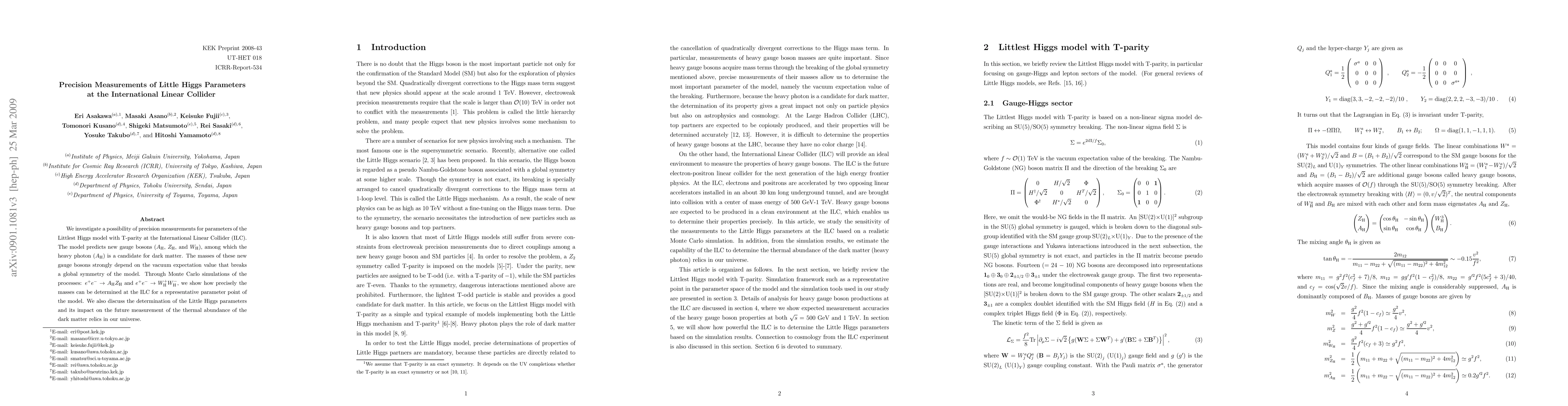 Researchers at the International Linear Collider investigate precision measurements of Little Higgs parameters, focusing on new gauge bosons that could be candidates for dark matter, and suggest potential improvements to measure their masses and implications for dark matter abundance.
