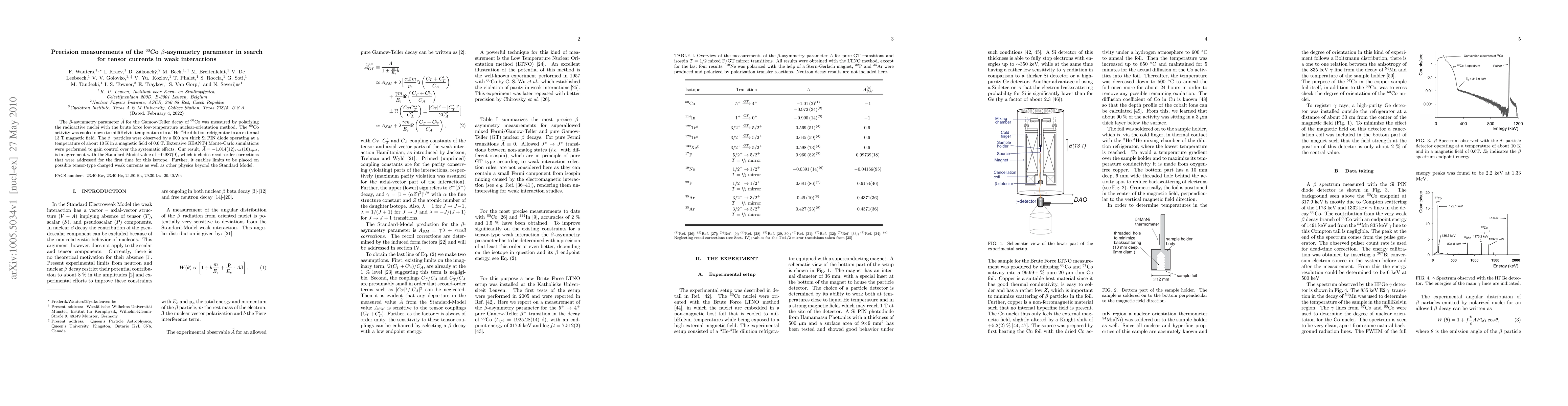 The $\beta$-asymmetry parameter $\widetilde{A}$ for the Gamow-Teller decay of $^{60}$Co was measured by polarizing the radioactive nuclei with the brute force low-temperature nuclear-orientation method. The $^{60}$Co activity was cooled down to milliKelvin temperatures in a $^3$He-$^4$He dilution refrigerator in an external 13 T magnetic field. The $\beta$ particles were observed by a 500 ${\mu}m$ thick Si PIN diode operating at a temperature of about 10 K in a magnetic field of 0.6 T. Extensive GEANT4 Monte-Carlo simulations were performed to gain control over the systematic effects. Our result, $\widetilde{A} = -1.014(12)_{stat}(16)_{syst}$, is in agreement with the Standard-Model value of $-0.987(9)$, which includes recoil-order corrections that were addressed for the first time for this isotope. Further, it enables limits to be placed on possible tensor-type charged weak currents as well as other physics beyond the Standard Model.