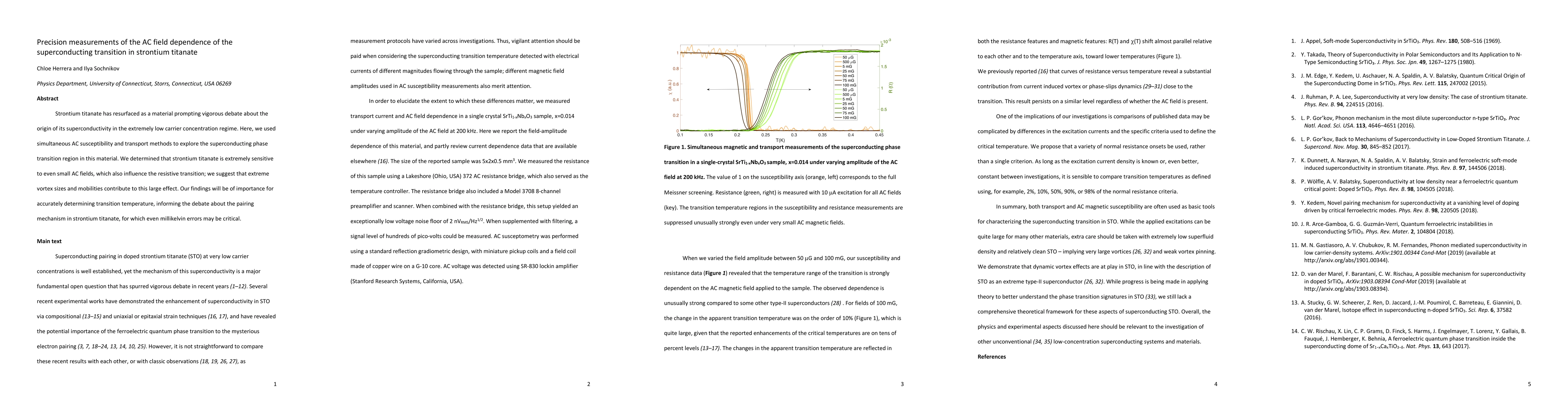 Strontium titanate has resurfaced as a material prompting vigorous debate about the origin of its superconductivity in the extremely low carrier concentration regime. Here, we used simultaneous AC susceptibility and transport methods to explore the superconducting phase transition region in this material. We determined that strontium titanate is extremely sensitive to even small AC fields, which also influence the resistive transition; we suggest that extreme vortex sizes and mobilities contribute to this large effect. Our findings will be of importance for accurately determining transition temperature, informing the debate about the pairing mechanism in strontium titanate, for which even millikelvin errors may be critical.