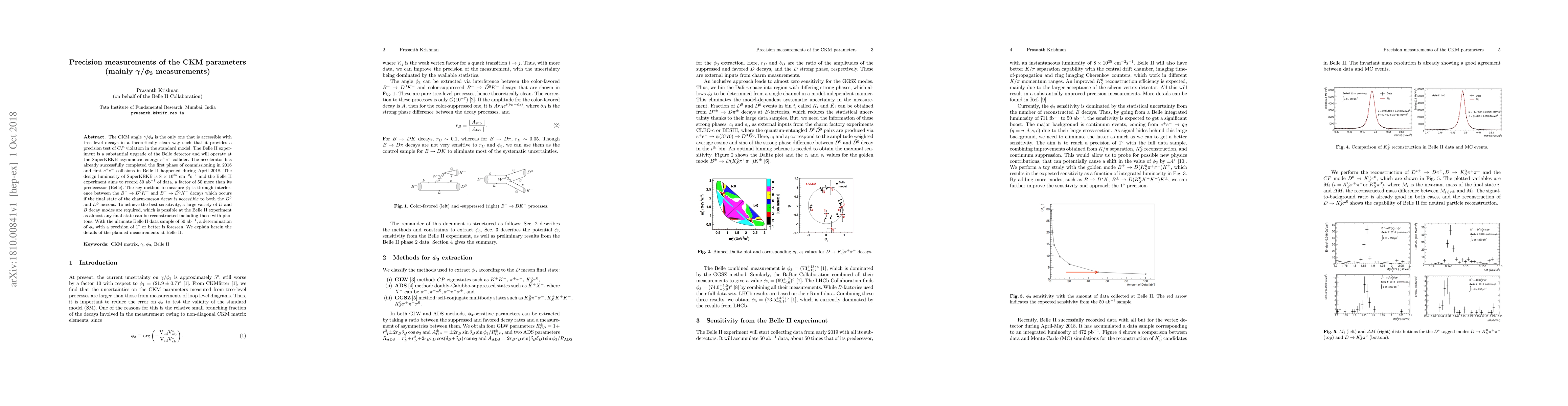 This paper discusses the precision measurements of the CKM angle $\gamma/\phi_{3}$ using the Belle II experiment, which aims to record 50 ab$^{-1}$ of data. The key method involves measuring interference between $B^- \to D^0 K^-$ and $B^- \to \bar{D^{0}} K^{-}$ decays, with a goal to determine $\phi_{3}$ with a precision of $1^{\circ}$ or better.