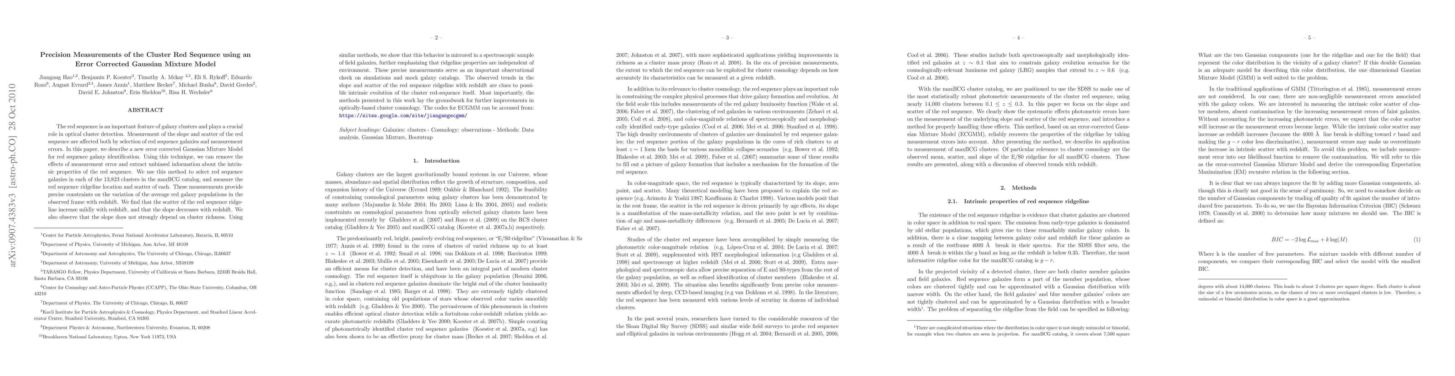 This paper introduces an error-corrected Gaussian Mixture Model to precisely measure the red sequence in galaxy clusters, revealing that the red sequence's scatter increases slightly with redshift while its slope decreases, and that these properties are largely independent of cluster richness.