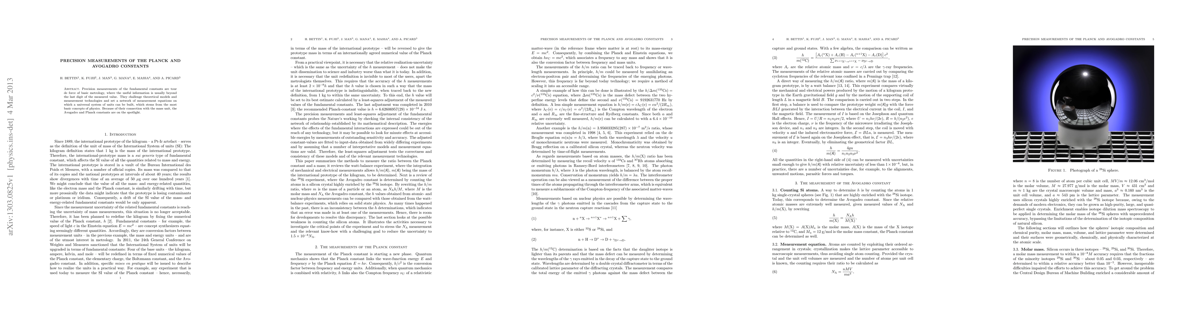 Precision measurements of the fundamental constants are tour de force of basic metrology, where the useful information is usually beyond the last digit of the measured value. They challenge theoretical models and measurement technologies and set a network of measurement equations on which a universal system of units can be built, which stems from the most basic concepts of physics. Because of their connection with the mass unit, the Avogadro and Planck constants are on the spotlight.