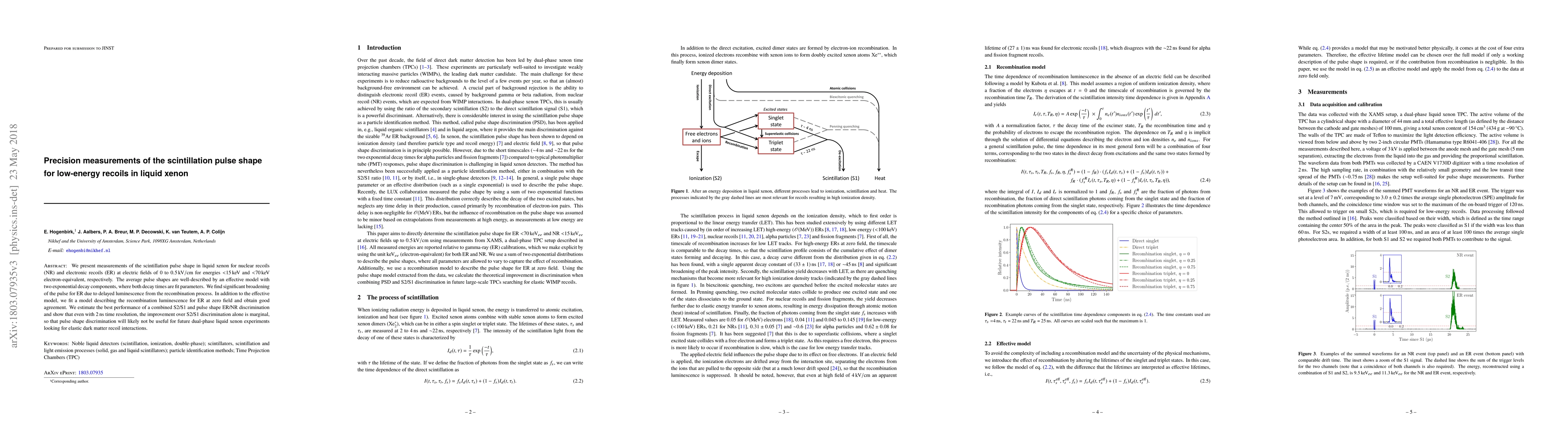 This paper reports precise measurements of scintillation pulse shapes in liquid xenon for low-energy nuclear and electronic recoils, finding that the pulse shapes are well-modeled by two exponential decay components. It concludes that while pulse shape discrimination offers marginal improvement over traditional methods, it is unlikely to be useful for future dark matter detection experiments.