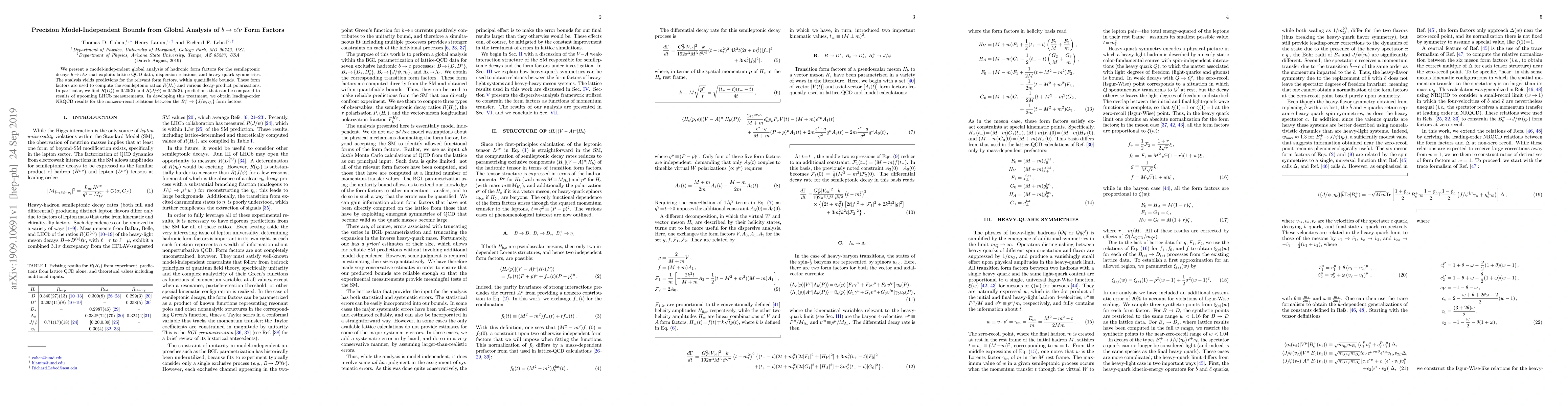 We present a model-independent global analysis of hadronic form factors for the semileptonic decays $b\rightarrow c\ell\nu$ that exploits lattice-QCD data, dispersion relations, and heavy-quark symmetries. The analysis yields predictions for the relevant form factors, within quantifiable bounds. These form factors are used to compute the semileptonic ratios $R(H_c)$ and various decay-product polarizations. In particular, we find $R(D_s^*)=0.20(3)$ and $R(J/\psi)=0.25(3)$, predictions that can be compared to results of upcoming LHCb measurements. In developing this treatment, we obtain leading-order NRQCD results for the nonzero-recoil relations between the $B_c^+ \rightarrow \{J/\psi , \eta_c \}$ form factors.
