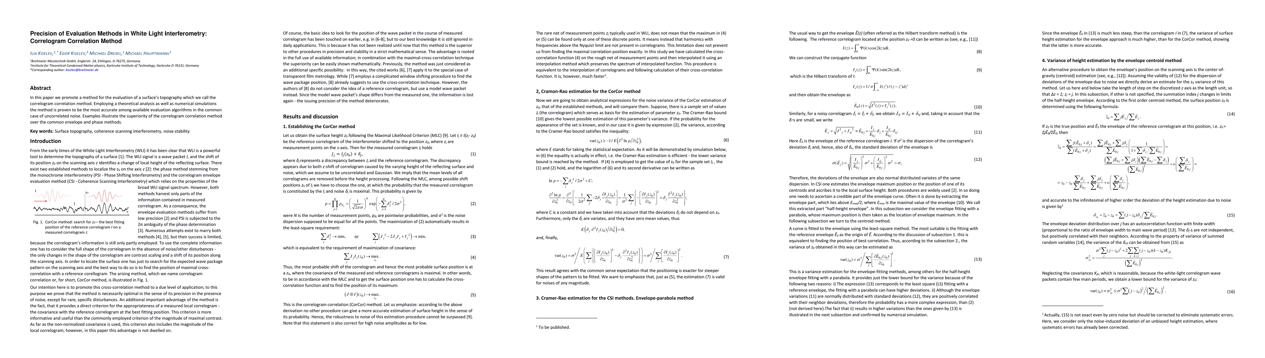 A new method called the correlogram correlation method is proposed for evaluating surface topography in white light interferometry, outperforming existing methods in accuracy.