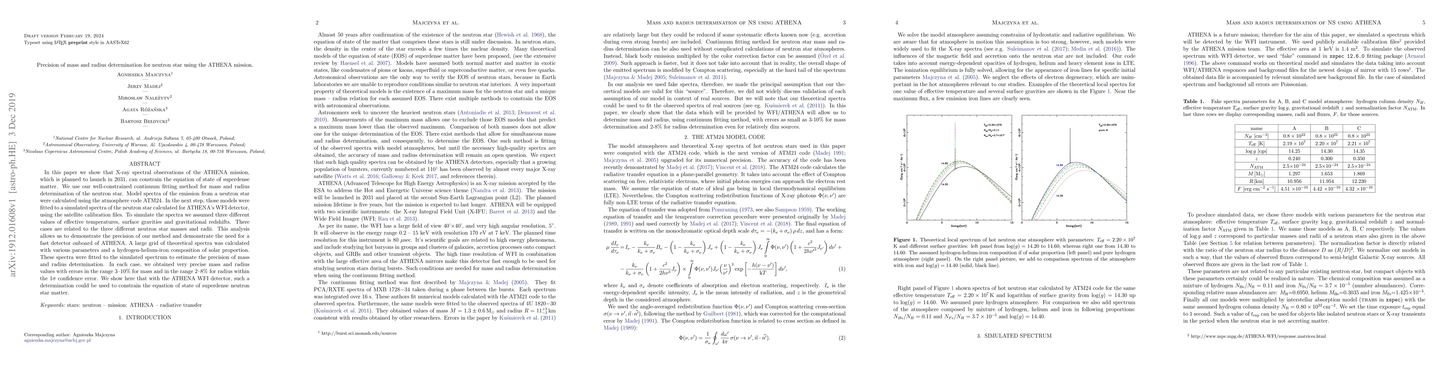 A study using the ATHENA mission's X-ray spectral observations shows that it can precisely determine neutron star masses and radii with errors of 3-10% for mass and 2-8% for radius, allowing for a better understanding of superdense matter's equation of state.