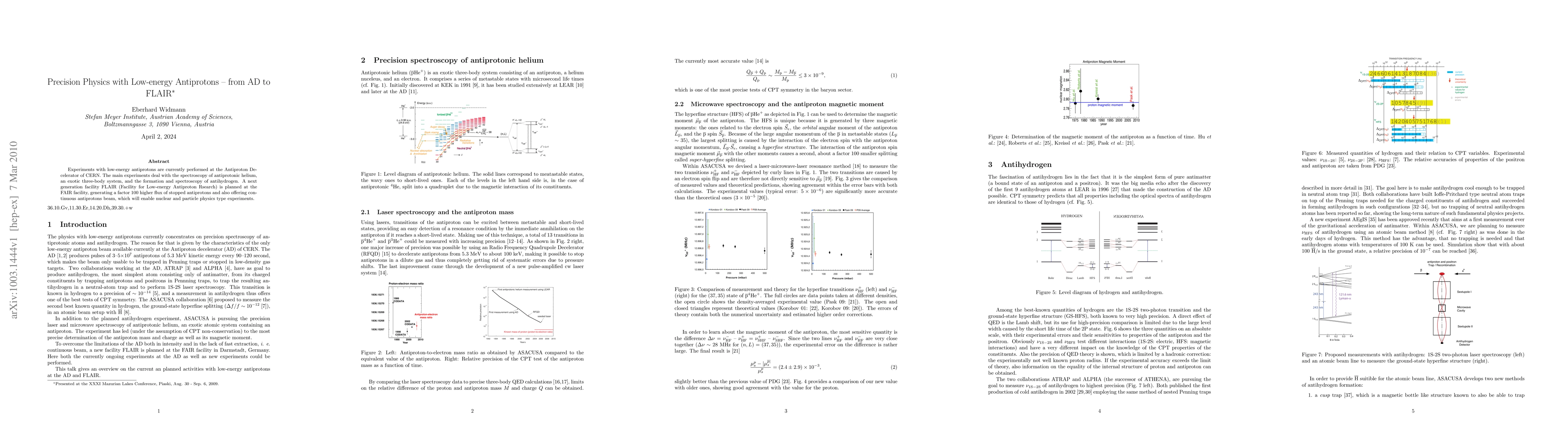 Experiments with low-energy antiprotons are currently performed at the Antiproton Decelerator of CERN. The main experiments deal with the spectroscopy of antiprotonic helium, an exotic three-body system, and the formation and spectroscopy of antihydrogen. A next generation facility FLAIR (Facility for Low-energy Antiproton Rsearch) is planned at the FAIR facility, generating a factor 100 higher flux of stopped antiprotons and also offering continuous antiprotons beam, which will enable nuclear and particle physics type experiments.