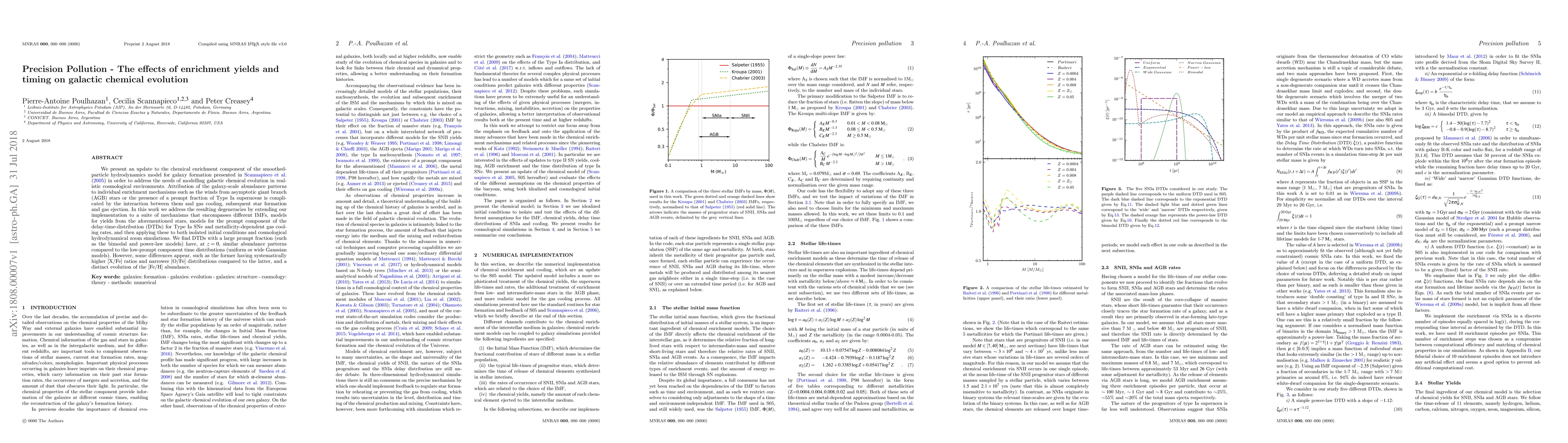 We present an update to the chemical enrichment component of the smoothed-particle hydrodynamics model for galaxy formation presented in Scannapieco et al. (2005) in order to address the needs of modelling galactic chemical evolution in realistic cosmological environments. Attribution of the galaxy-scale abundance patterns to individual enrichment mechanisms such as the winds from asymptotic giant branch (AGB) stars or the presence of a prompt fraction of Type Ia supernovae is complicated by the interaction between them and gas cooling, subsequent star formation and gas ejection. In this work we address the resulting degeneracies by extending our implementation to a suite of mechanisms that encompasses different IMFs, models for yields from the aforementioned stars, models for the prompt component of the delay-time-distribution (DTDs) for Type Ia SNe and metallicity-dependent gas cooling rates, and then applying these to both isolated initial conditions and cosmological hydrodynamical zoom simulations. We find DTDs with a large prompt fraction (such as the bimodal and power-law models) have, at z=0, similar abundance patterns compared to the low-prompt component time distributions (uniform or wide Gaussian models). However, some differences appear, such as the former having systematically higher [X/Fe] ratios and narrower [O/Fe] distributions compared to the latter, and a distinct evolution of the [Fe/H] abundance.