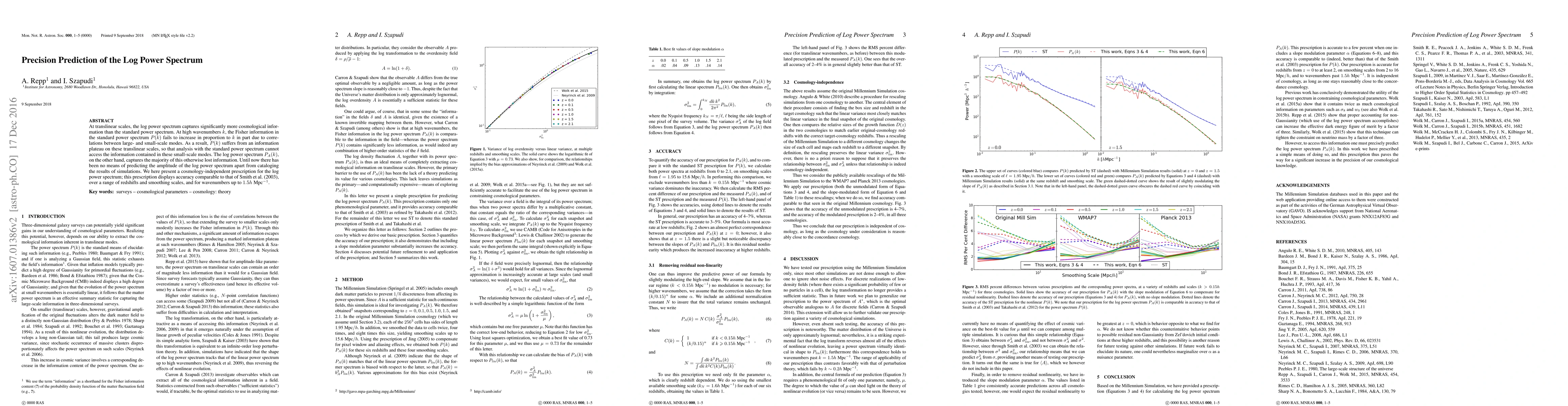 At translinear scales, the log power spectrum captures significantly more cosmological information than the standard power spectrum. At high wavenumbers $k$, the Fisher information in the standard power spectrum $P(k)$ fails to increase in proportion to $k$ in part due to correlations between large- and small-scale modes. As a result, $P(k)$ suffers from an information plateau on these translinear scales, so that analysis with the standard power spectrum cannot access the information contained in these small-scale modes. The log power spectrum $P_A(k)$, on the other hand, captures the majority of this otherwise lost information. Until now there has been no means of predicting the amplitude of the log power spectrum apart from cataloging the results of simulations. We here present a cosmology-independent prescription for the log power spectrum; this prescription displays accuracy comparable to that of Smith et al. (2003), over a range of redshifts and smoothing scales, and for wavenumbers up to $1.5h$ Mpc$^{-1}$.