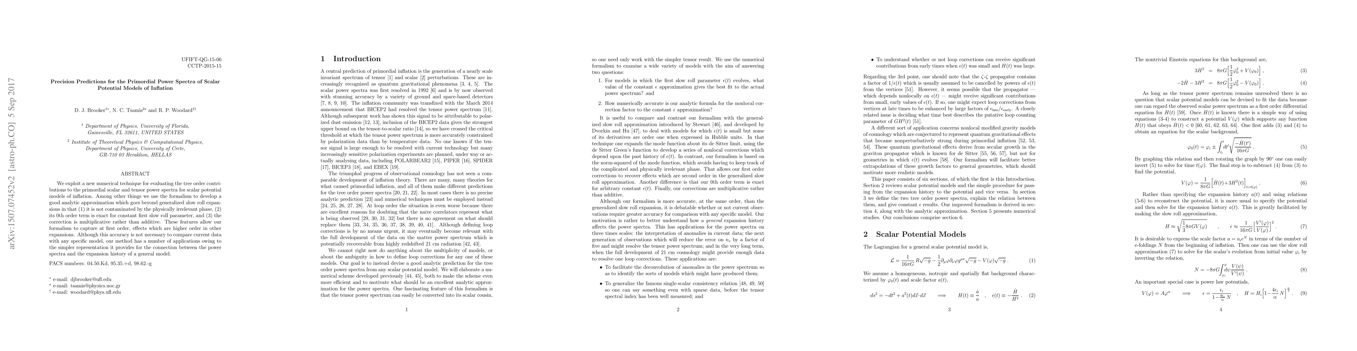 We exploit a new numerical technique for evaluating the tree order contributions to the primordial scalar and tensor power spectra for scalar potential models of inflation. Among other things we use the formalism to develop a good analytic approximation which goes beyond generalized slow roll expansions in that (1) it is not contaminated by the physically irrelevant phase, (2) its 0th order term is exact for constant first slow roll parameter, and (3) the correction is multiplicative rather than additive. These features allow our formalism to capture at first order, effects which are higher order in other expansions. Although this accuracy is not necessary to compare current data with any specific model, our method has a number of applications owing to the simpler representation it provides for the connection between the power spectra and the expansion history of a general model.