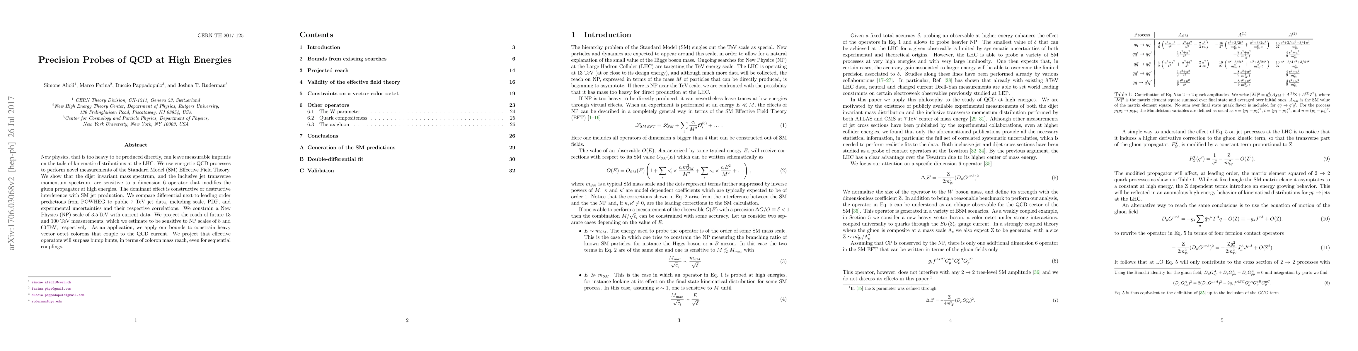 New physics, that is too heavy to be produced directly, can leave measurable imprints on the tails of kinematic distributions at the LHC. We use energetic QCD processes to perform novel measurements of the Standard Model (SM) Effective Field Theory. We show that the dijet invariant mass spectrum, and the inclusive jet transverse momentum spectrum, are sensitive to a dimension 6 operator that modifies the gluon propagator at high energies. The dominant effect is constructive or destructive interference with SM jet production. We compare differential next-to-leading order predictions from POWHEG to public 7 TeV jet data, including scale, PDF, and experimental uncertainties and their respective correlations. We constrain a New Physics (NP) scale of 3.5 TeV with current data. We project the reach of future 13 and 100 TeV measurements, which we estimate to be sensitive to NP scales of 8 and 60 TeV, respectively. As an application, we apply our bounds to constrain heavy vector octet colorons that couple to the QCD current. We project that effective operators will surpass bump hunts, in terms of coloron mass reach, even for sequential couplings.