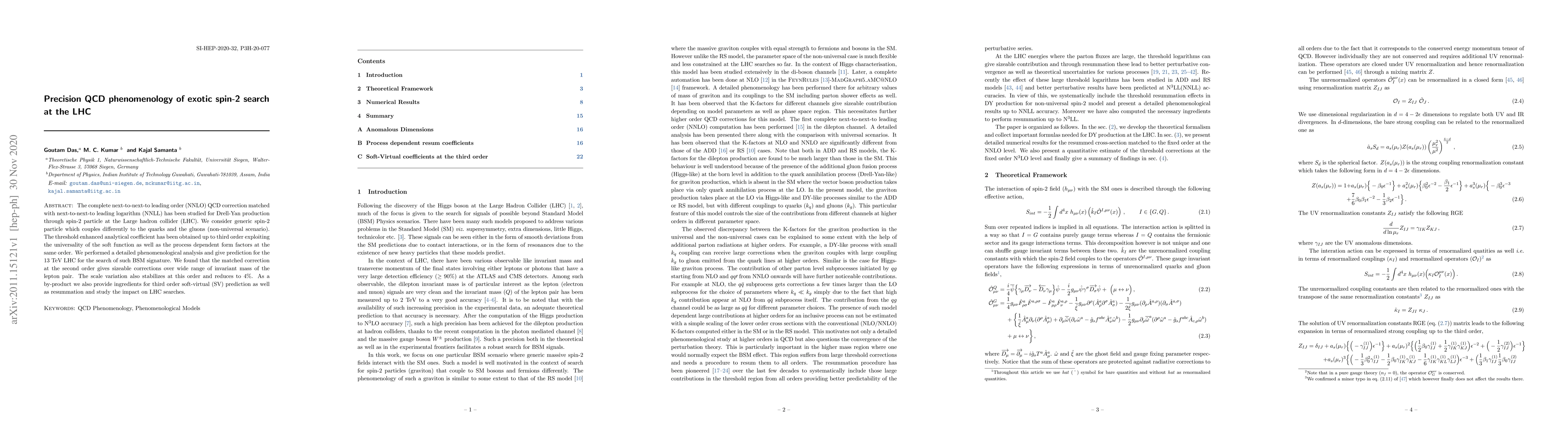 This research presents a precise QCD analysis for searching spin-2 exotic particles via Drell-Yan production at the LHC, considering non-universal couplings. The study includes NNLO QCD corrections and NNLL resummation, revealing significant corrections up to wide lepton pair invariant mass ranges and stable scale variations at second-order, reducing to 4%. It also offers components for third-order soft-virtual predictions and resummation impact assessment on LHC searches.