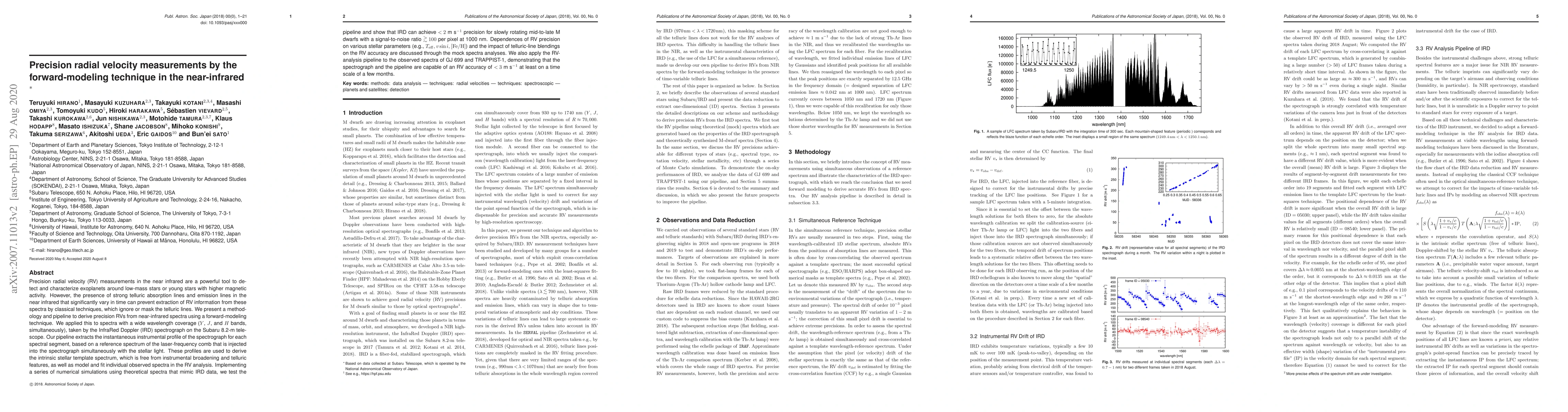 This paper introduces a forward-modeling technique for precision radial velocity measurements in the near-infrared, enabling the detection and characterization of exoplanets around low-mass stars. The methodology uses the InfraRed Doppler spectrograph on the Subaru telescope to extract intrinsic stellar spectra free from instrumental broadening and telluric features, achieving precisions of less than 2 m s$^{-1}$ for M dwarfs.