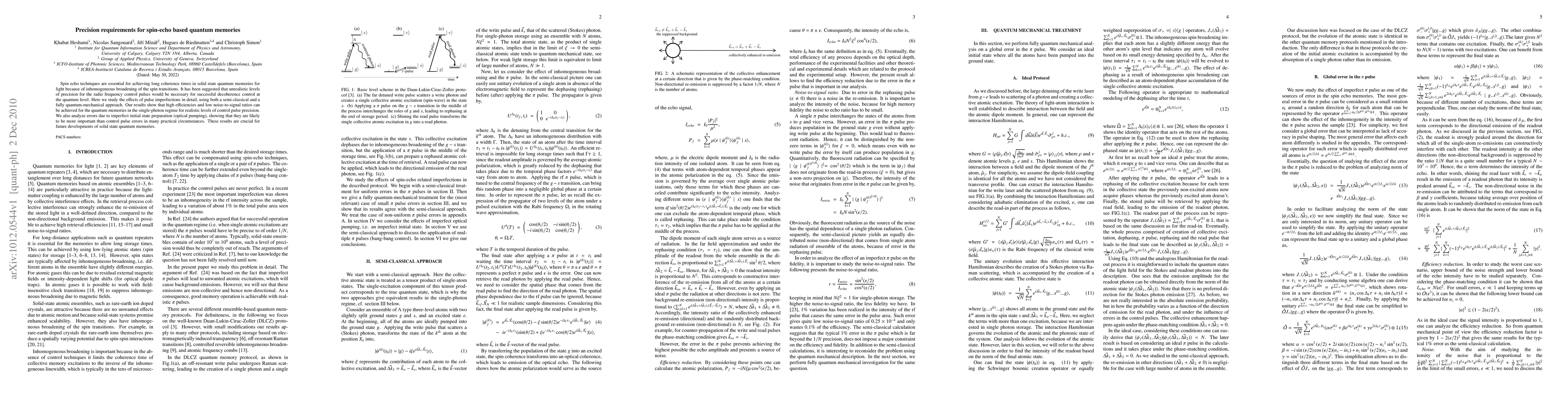 This paper investigates the precision requirements for spin-echo based quantum memories, demonstrating that realistic levels of radio frequency control pulse precision can achieve high efficiency and low noise in single-photon regimes. It also highlights that errors from imperfect initial state preparation may be more significant than control pulse errors in practical applications.