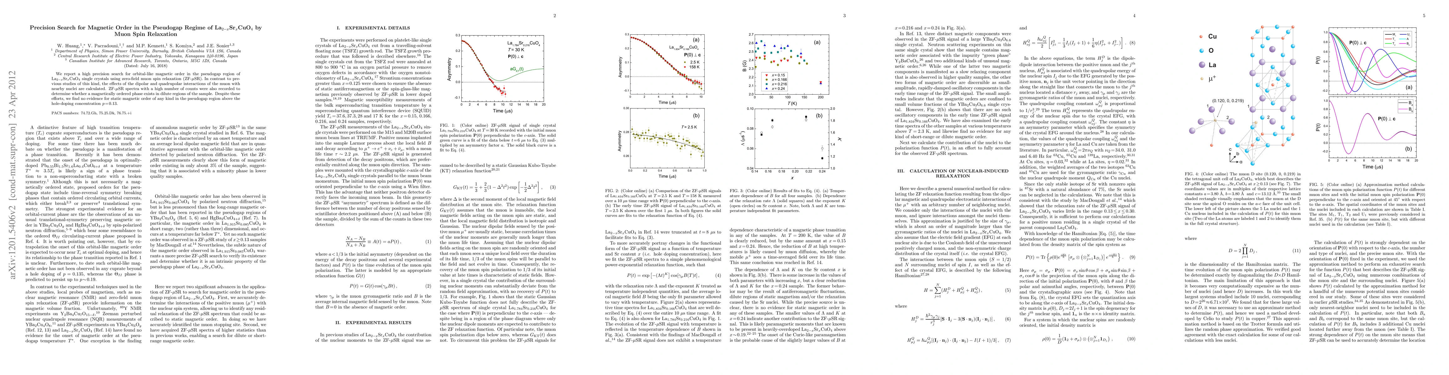 Researchers used muon spin relaxation to search for magnetic order in La2-xSrxCuO4, a material with a pseudogap, but found no evidence of static magnetic order above a certain doping concentration.