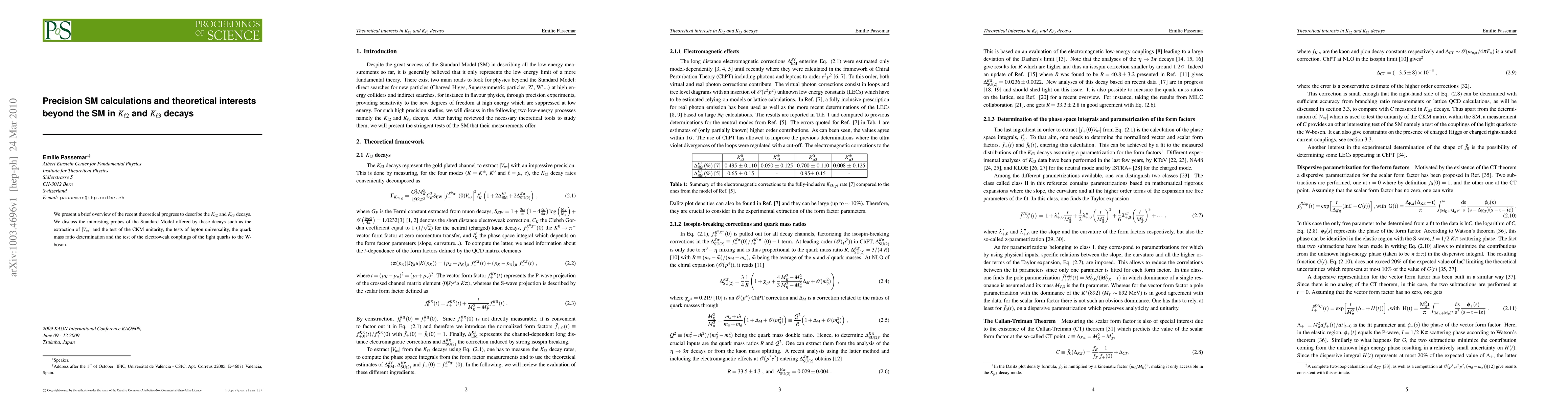 This paper reviews recent theoretical advancements in understanding K_{l2} and K_{l3} decays, highlighting their potential to test the Standard Model, including the extraction of |V_{us}|, CKM unitarity, lepton universality, quark mass ratios, and electroweak couplings of light quarks.