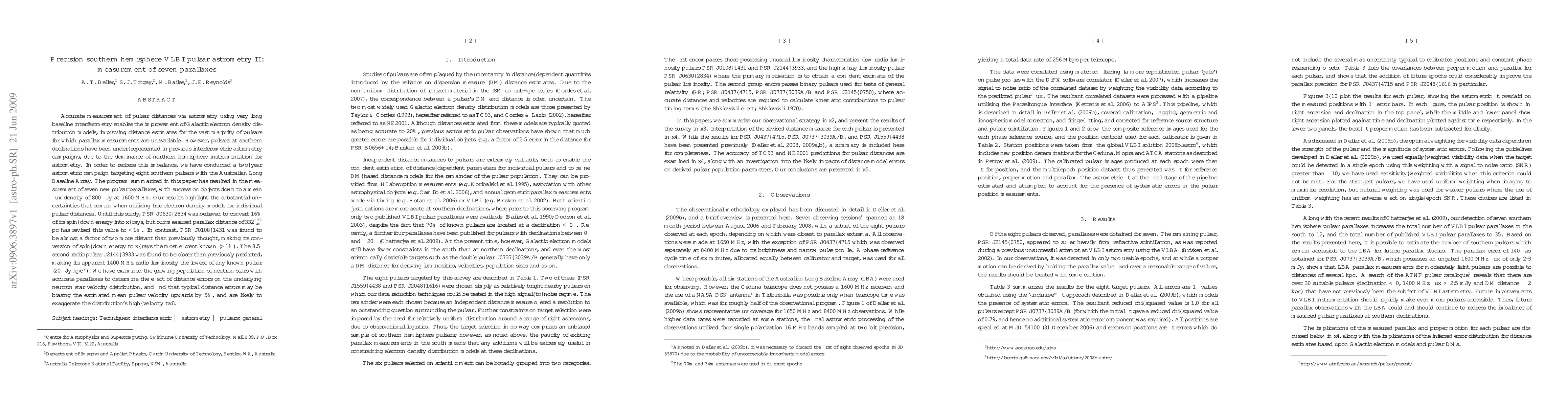 Accurate measurement of pulsar distances via astrometry using very long baseline interferometry enables the improvement of Galactic electron density distribution models, improving distance estimates for the vast majority of pulsars for which parallax measurements are unavailable. However, pulsars at southern declinations have been under-represented in previous interferometric astrometry campaigns. In order to redress this imbalance, we have conducted a two-year astrometric campaign targeting eight southern pulsars with the Australian Long Baseline Array. The program summarized in this paper has resulted in the measurement of seven new pulsar parallaxes, with success on objects down to a mean flux density of 0.8 mJy at 1600 MHz. Our results highlight the substantial uncertainties that remain when utilizing free electron density models for individual pulsar distances. Until this study, PSR J0630-2834 was believed to convert 16% of its spin-down energy into x-rays, but our measured parallax distance of 332 (+52 -40) pc has revised this value to <1%. In contrast, PSR J0108-1431 was found to be almost a factor of two more distant than previously thought, making its conversion of spin-down energy to x-rays the most efficient known (>1%). The 8.5 second radio pulsar J2144-3933 was found to be closer than previously predicted, making its apparent 1400 MHz radio luminosity the lowest of any known pulsar (20 microJy kpc^2). We have examined the growing population of neutron stars with accurate parallaxes to determine the effect of distance errors on the underlying neutron star velocity distribution, and find that typical distance errors may be biasing the estimated mean pulsar velocity upwards by 5%, and are likely to exaggerate the distribution's high-velocity tail.