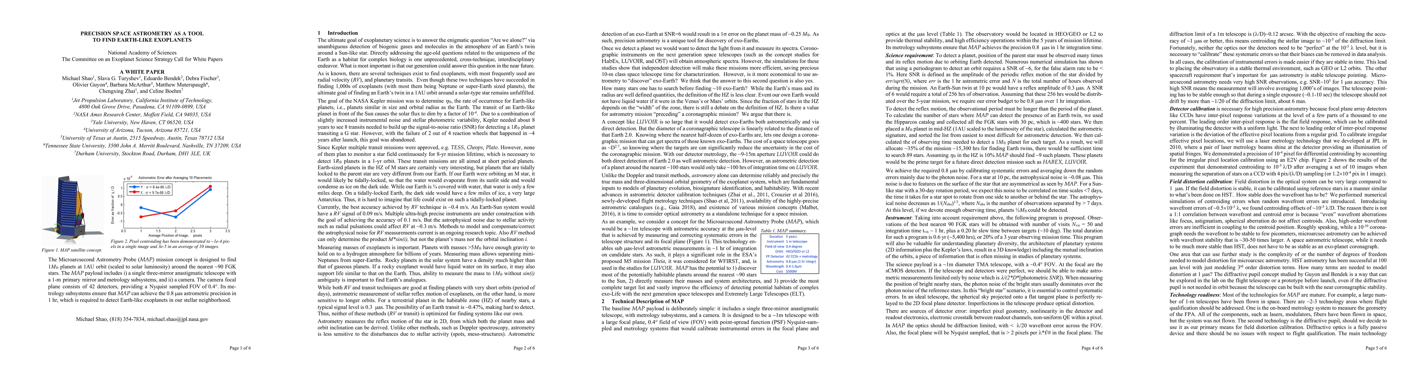 A space mission called Microarcsecond Astrometry Probe (MAP) aims to detect Earth-like exoplanets using precision astrometry within the next decade, with a focus on 90 nearby stars.