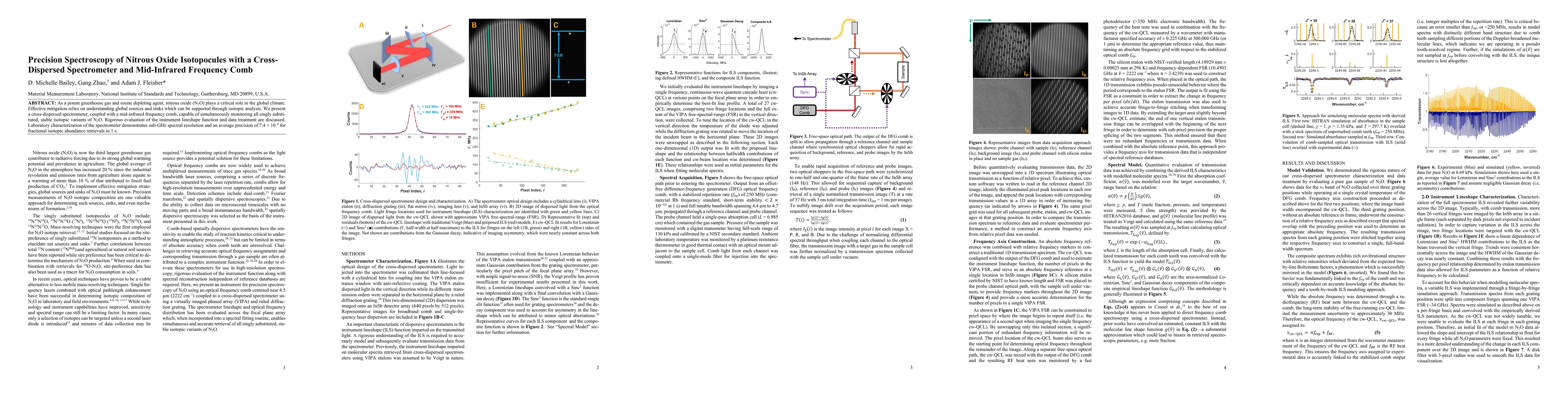 This paper introduces a novel cross-dispersed spectrometer with a mid-infrared frequency comb for precise spectroscopy of nitrous oxide isotopocules, enabling simultaneous monitoring of all stable isotopic variants. The instrument achieves sub-GHz resolution and high precision in isotopic abundance measurements.
