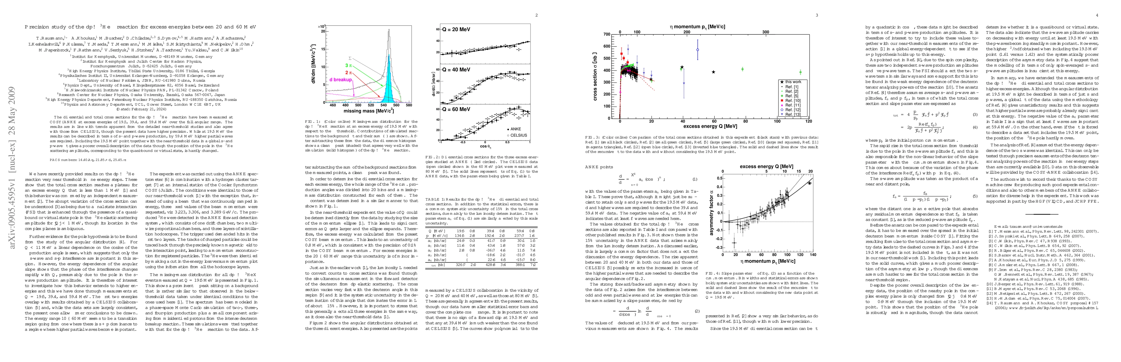 Researchers measured differential and total cross sections for a nuclear reaction at various energies, confirming earlier trends while providing higher precision. The results shed light on the 3He+eta reaction's partial waves and quasi-bound state.