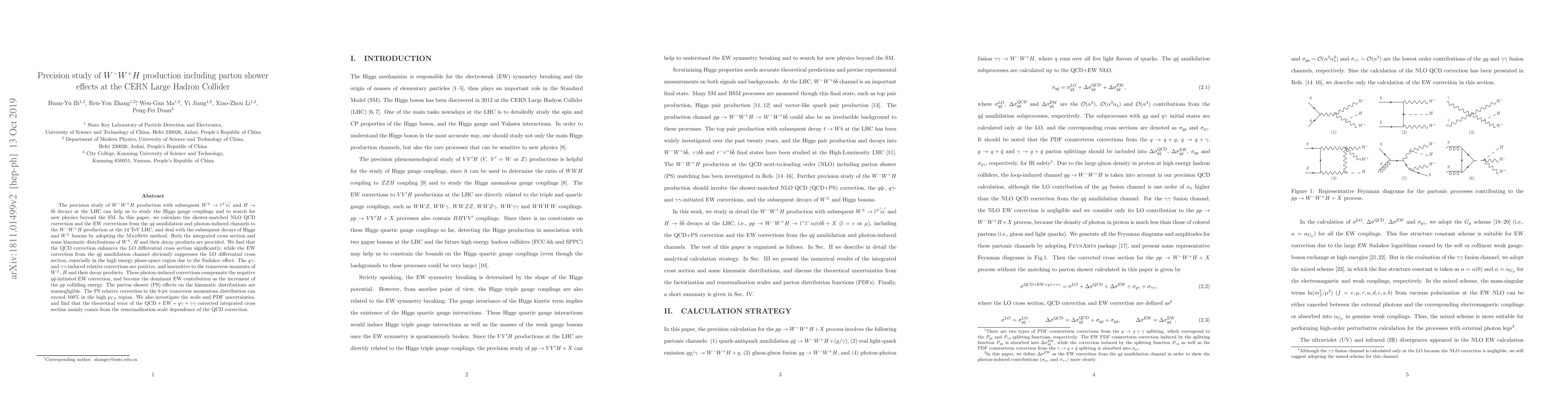 This study provides precise calculations of W+W−H production at the LHC, including QCD and electroweak corrections, to better understand Higgs interactions and potential new physics. It highlights the significant impact of parton shower effects and photon-induced processes on key kinematic distributions and theoretical uncertainties.