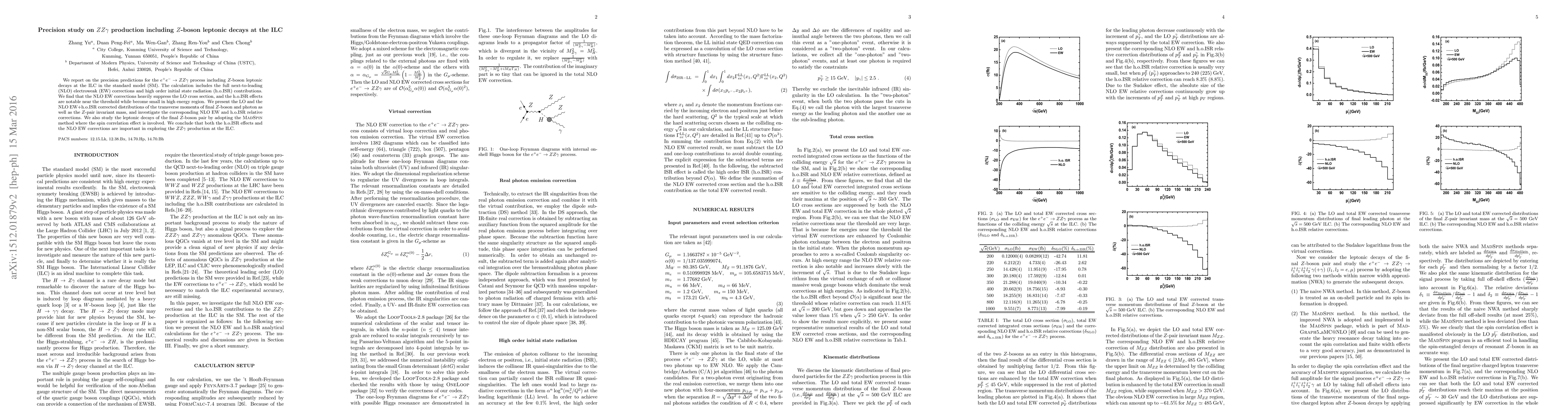 We report on the precision predictions for the $e^+e^-\to ZZ\gamma$ process including $Z$-boson leptonic decays at the ILC in the standard model (SM). The calculation includes the full next-to-leading (NLO) electroweak (EW) corrections and high order initial state radiation (h.o.ISR) contributions. We find that the NLO EW corrections heavily suppress the LO cross section, and the h.o.ISR effects are notable near the threshold while become small in high energy region. We present the LO and the NLO EW+h.o.ISR corrected distributions of the transverse momenta of final $Z$-boson and photon as well as the $Z$-pair invariant mass, and investigate the corresponding NLO EW and h.o.ISR relative corrections. We also study the leptonic decays of the final $Z$-boson pair by adopting the {\sc MadSpin} method where the spin correlation effect is involved. We conclude that both the h.o.ISR effects and the NLO EW corrections are important in exploring the $ZZ\gamma$ production at the ILC.