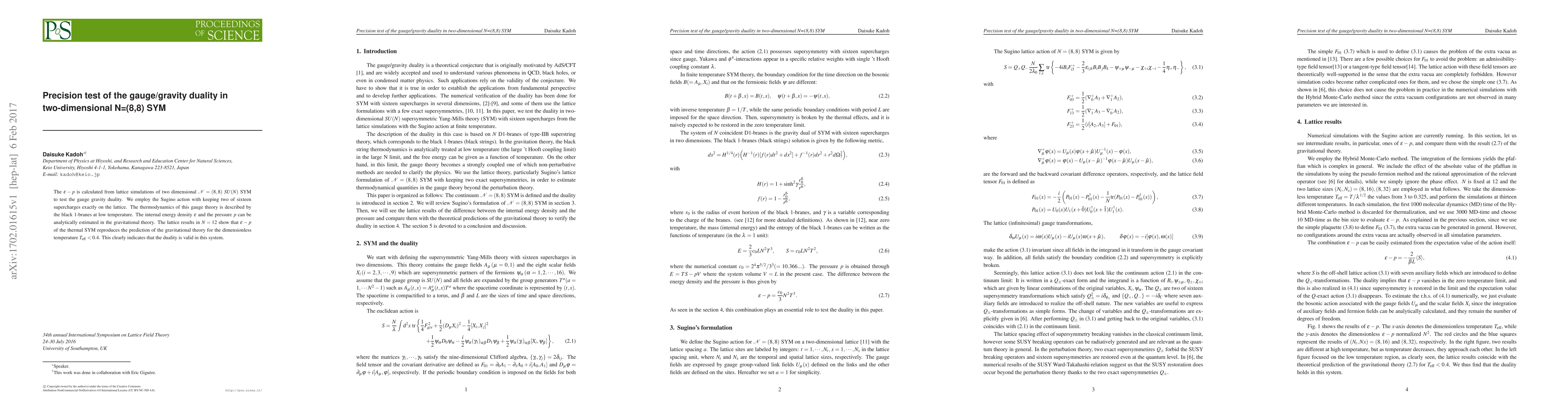 This study uses lattice simulations to test the gauge/gravity duality in two-dimensional $\mathcal{N}=(8,8)$ $SU(N)$ SYM, finding that $\epsilon - p$ values align with predictions from the gravitational theory at low temperatures, confirming the validity of the duality for $T_{\rm eff}<0.4$.
