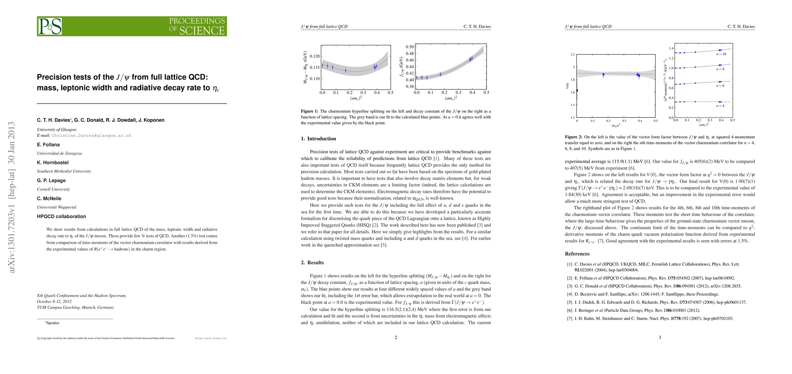 We show results from calculations in full lattice QCD of the mass, leptonic width and radiative decay rate to eta_c of the J/psi meson. These provide few % tests of QCD. Another (1.5%) test comes from comparison of time-moments of the vector charmonium correlator with results derived from the experimental values of R(e+e- to hadrons) in the charm region.