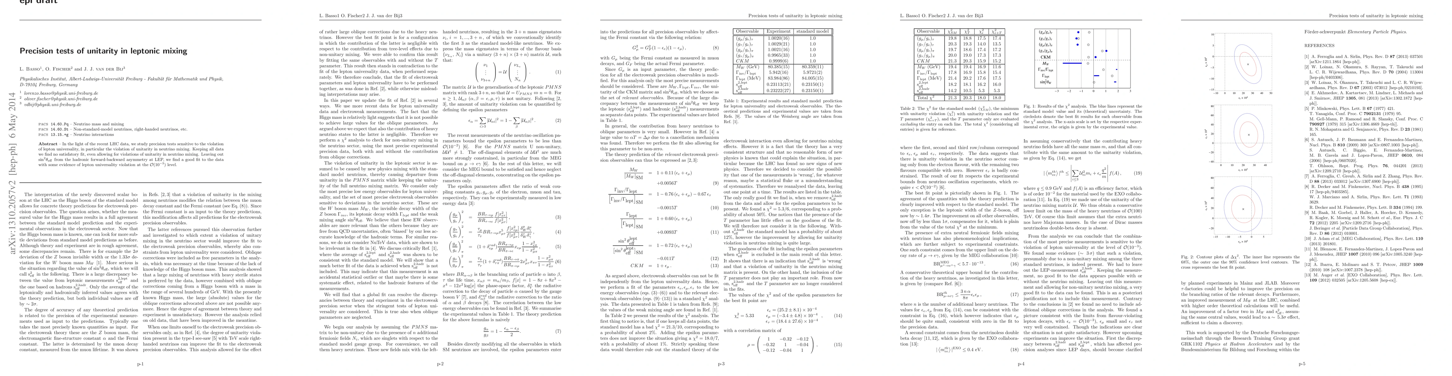 In the light of the recent LHC data, we study precision tests sensitive to the violation of lepton universality, in particular the violation of unitarity in neutrino mixing. Keeping all data we find no satisfatory fit, even allowing for violations of unitarity in neutrino mixing. Leaving out sin$^2 \theta_{\scriptsize \mbox{eff}}$ from the hadronic forward-backward asymmetry at LEP, we find a good fit to the data with some evidence of lepton universality violation at the $\mathcal{O}(10^{-3})$ level.