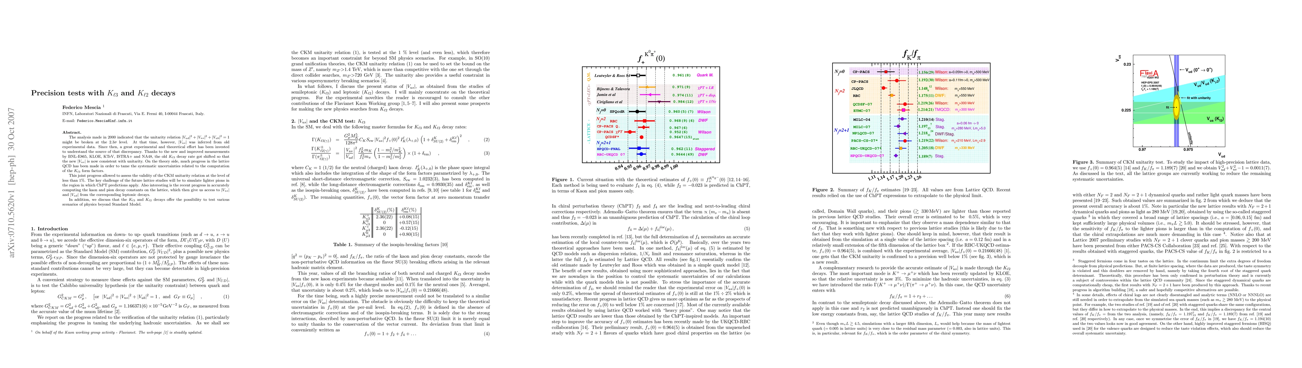This paper reports significant advancements in precision tests of the CKM unitarity relation through improved Kl3 decay measurements and lattice QCD calculations, resolving previous discrepancies and achieving less than 1% uncertainty. It also discusses the potential of Kl3 and Kl2 decays to probe physics beyond the Standard Model.