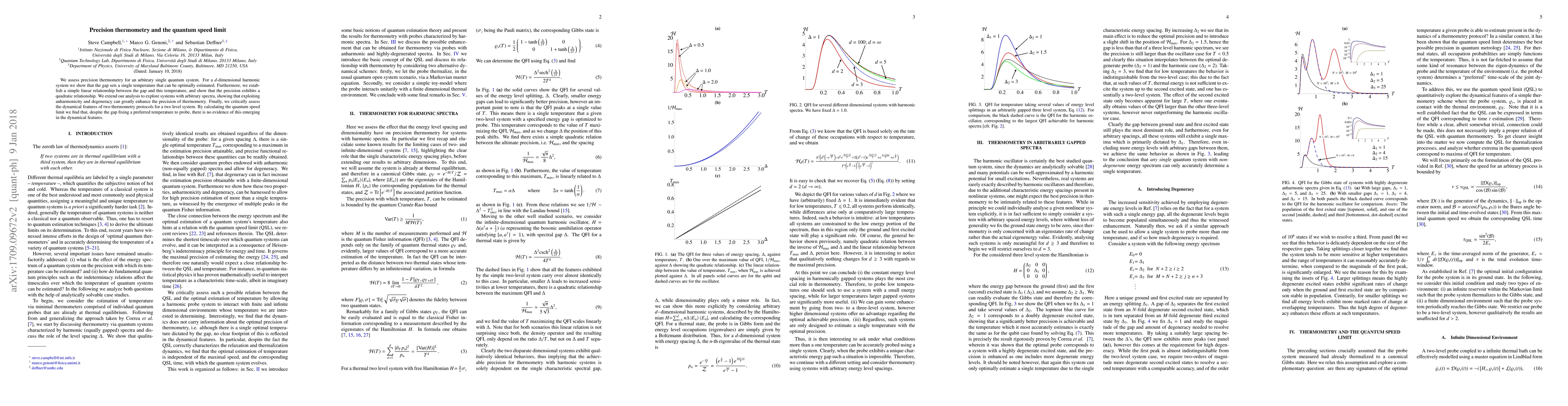 This paper investigates precision thermometry for quantum systems, demonstrating that the energy gap determines an optimal temperature for estimation. It reveals a linear relationship between the gap and this temperature, with precision scaling quadratically, and explores how anharmonicity and degeneracy can improve thermometry precision. However, the quantum speed limit analysis shows no dynamical evidence of the gap-fixed temperature.