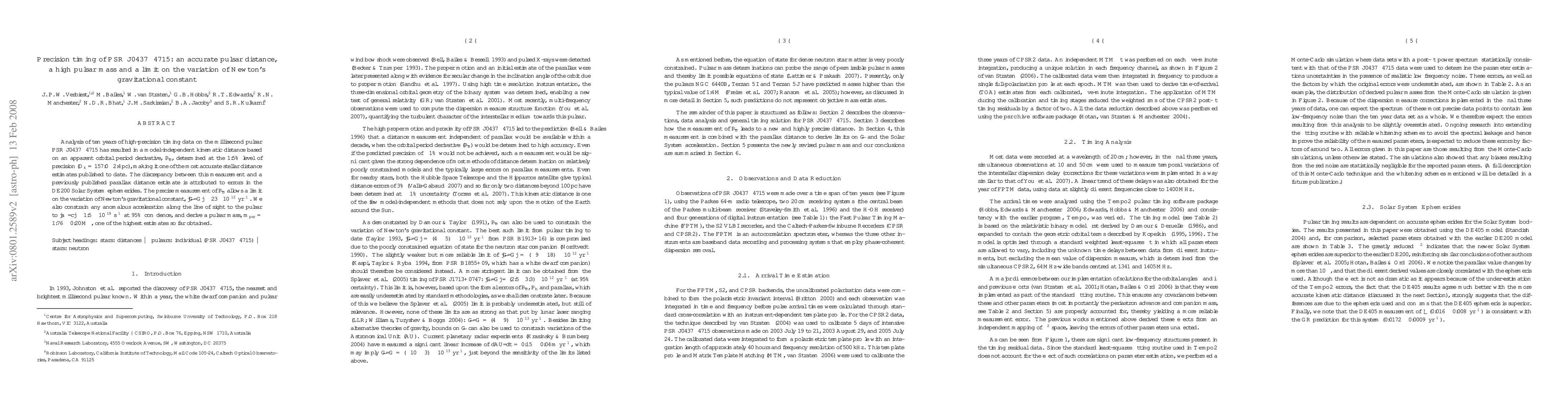 Astronomers have accurately measured a millisecond pulsar's distance, mass, and gravitational constant limit, with implications for understanding the universe's gravity and stellar motion.