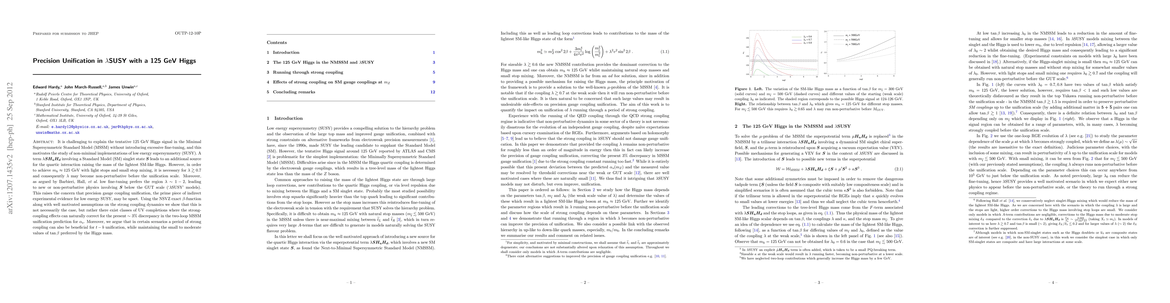 It is challenging to explain the tentative 125 GeV Higgs signal in the Minimal Supersymmetric Standard Model (MSSM) without introducing excessive fine-tuning, and this motivates the study of non-minimal implementations of low energy supersymmetry (SUSY). A term \lambda SH_uH_d involving a Standard Model (SM) singlet state S leads to an additional source for the quartic interaction raising the mass of the lightest SM-like Higgs. However, in order to achieve m_h \approx 125 GeV with light stops and small stop mixing, it is necessary for \lambda \gtrsim 0.7 and consequently \lambda may become non-perturbative before the unification scale. Moreover, as argued by Barbieri, Hall, et al. low fine-tuning prefers the region \lambda~1-2, leading to new or non-perturbative physics involving S below the GUT scale (`\lambda SUSY' models). This raises the concern that precision gauge coupling unification, the prime piece of indirect experimental evidence for low energy SUSY, may be upset. Using the NSVZ exact \beta-function along with well motivated assumptions on the strong coupling dynamics we show that this is not necessarily the case, but rather there exist classes of UV completions where the strong-coupling effects can naturally correct for the present ~3% discrepancy in the two-loop MSSM unification prediction for \alpha_s. Moreover, we argue that in certain scenarios a period of strong coupling can also be beneficial for t-b unification, while maintaining the small to moderate values of tan\beta preferred by the Higgs mass.
