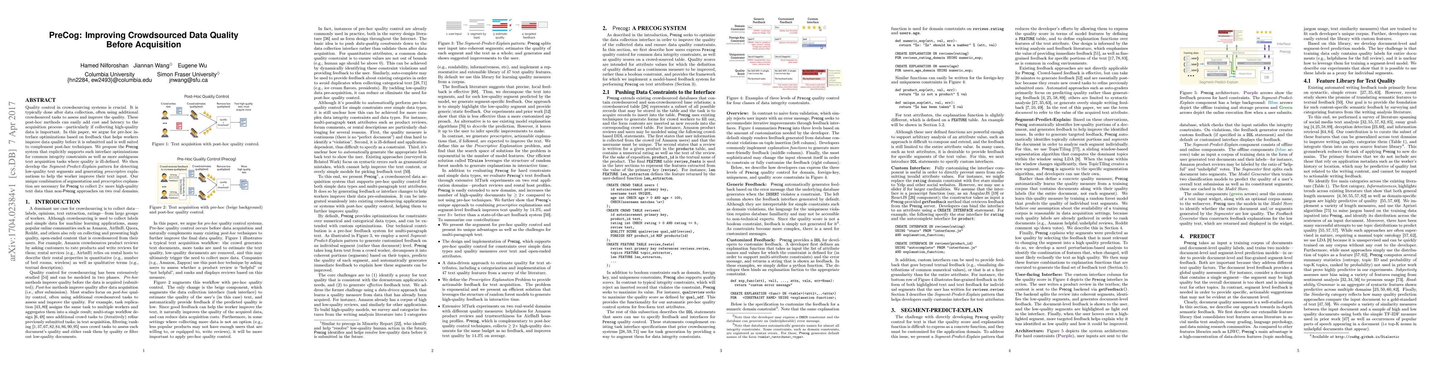 This paper introduces Precog, a system that optimizes crowdsourcing interfaces to improve data quality before submission, thereby reducing costs and latency. Precog employs a Segment-Predict-Explain pattern to detect and correct low-quality text segments, resulting in 2x more high-quality text data compared to non-optimized methods.