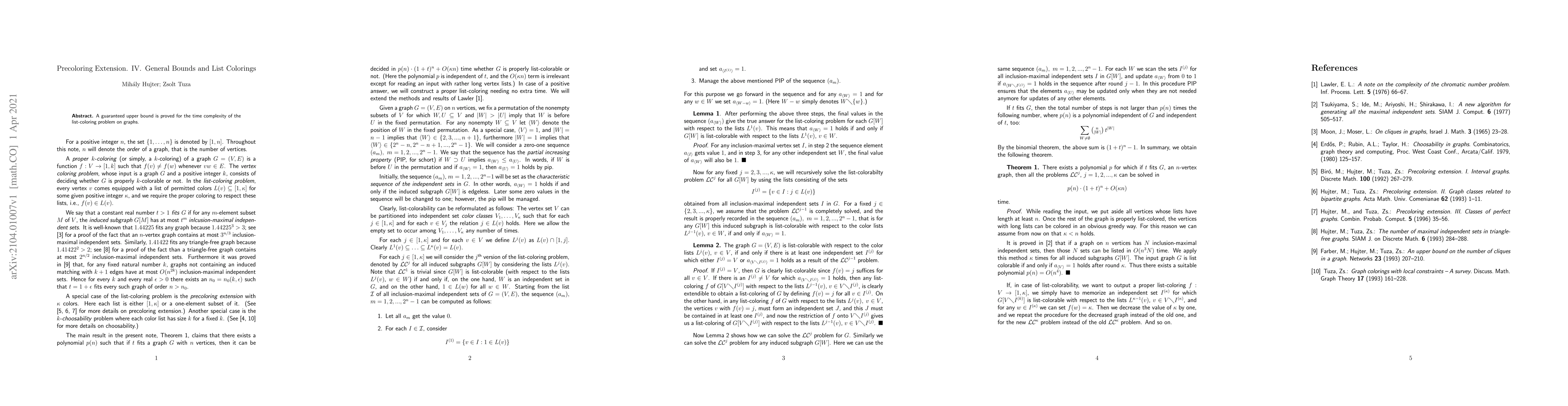 A guaranteed upper bound is proved for the time complexity of the list-coloring problem on graphs.
